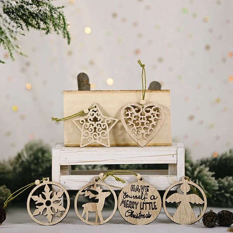 Деревянные Рождественские Подвески, 12 шт., рождественские украшения для дома, 2020, украшения для новогодней елки, рождественские подарки, новый год 2021