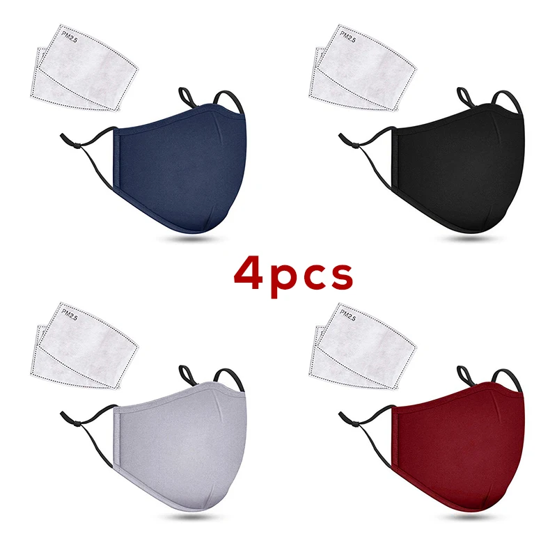 4 шт. + 8 фильтрующих моющихся черных масок рот маска для лица анти PM2.5 Пылезащитная маска для рта угольный фильтр Маска Ткань хлопковая маска