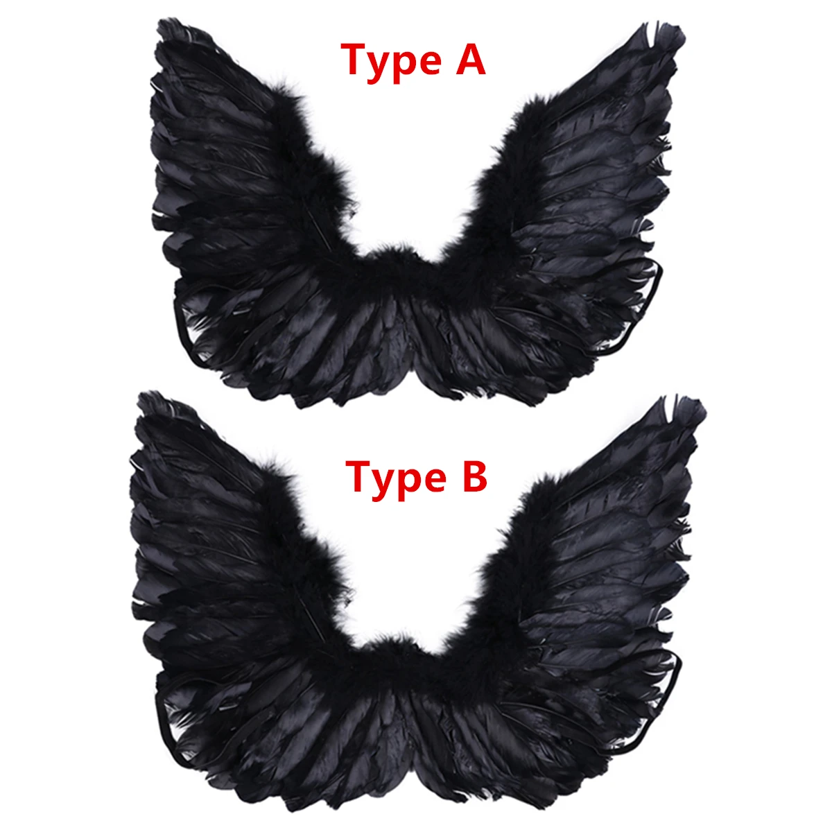 Для взрослых и детей, черные ангельские сказочные перья, крылья, дл...