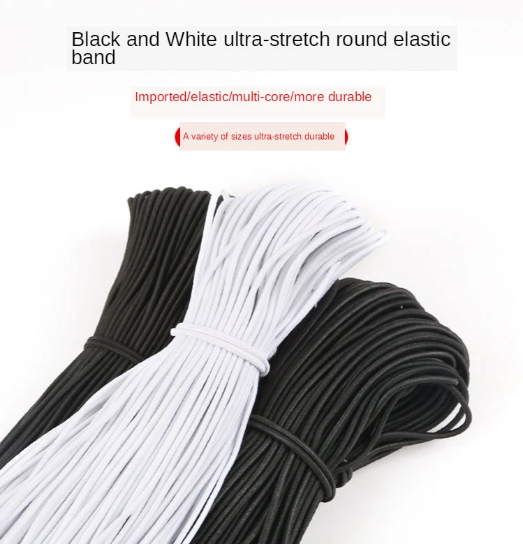 1-6 мм белый/черный круглый высокоэластичный прошитый эластичный ремешок резинка на талии эластичная резинка на талии растягивающаяся Веревка DIY Швейные аксессуары