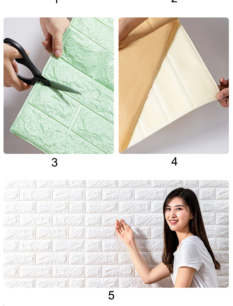 Особенность: 1: трехмерная декоративная мягкая пена, защита от столкновений для детей, безопасность для вашей семьи.2: Безопасность и защита окружающей среды, Нетоксичная без запаха, подходит для семейного безопасного домашнего пространства.3: Реалистичный, эффект натурального кирпича, простой и современный стиль.4: Бесплатный «сделай сам», легкий самоклеящийся дизайн, установка, случайный коллаж, произвольный вырез.5: лучший эффект шумоподавления по сравнению с обоями. Способы и инструменты установки Подготовка: Наклейте чистую поверхность с приклеиванием, например: деревянную поверхность, стеклянную поверхность, не пылевую стену, нанесите шпаклевку на дно стены и так далее. Наклеить: заднюю крышку оторванной бумаги наклеить на вспомогательные инструменты: ножницы, универсальный нож Внимание: пожалуйста, покупайте одновременно достаточное количество штук, чтобы избежать разницы в цвете.