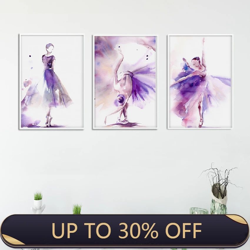Фиолетовый балетный танцор холст картины GrilРуна искусство северных Плакаты и принты украшения дома Настенная картина без рамки