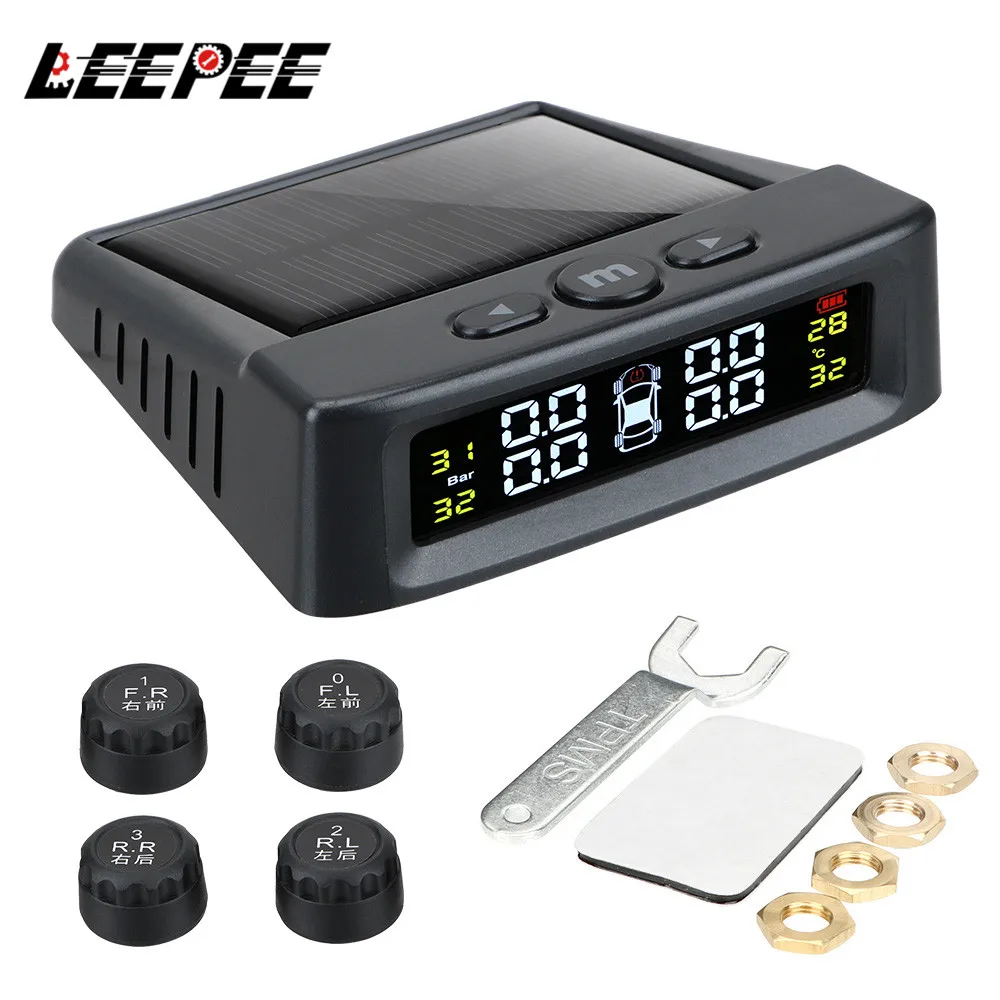 Система мониторинга давления в шинах TPMS, на солнечной батарее, монитор давления в шинах внешнийВстроенный с 4 внешними датчиками, аксессуары для шин