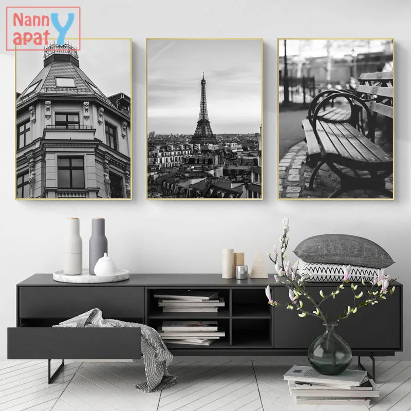 Черно-белый пейзаж в стиле ретро, Постер Парижской башни, европейская архитектура, живопись на холсте, Скандинавская Настенная картина, украшение для дома