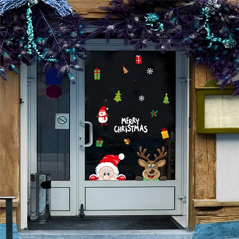 Санта Лось Рождество ПВХ статическая наклейка украшение для дома окна большая Снежинка Наклейка на стену новогодвечерние НКА стекло украшение
