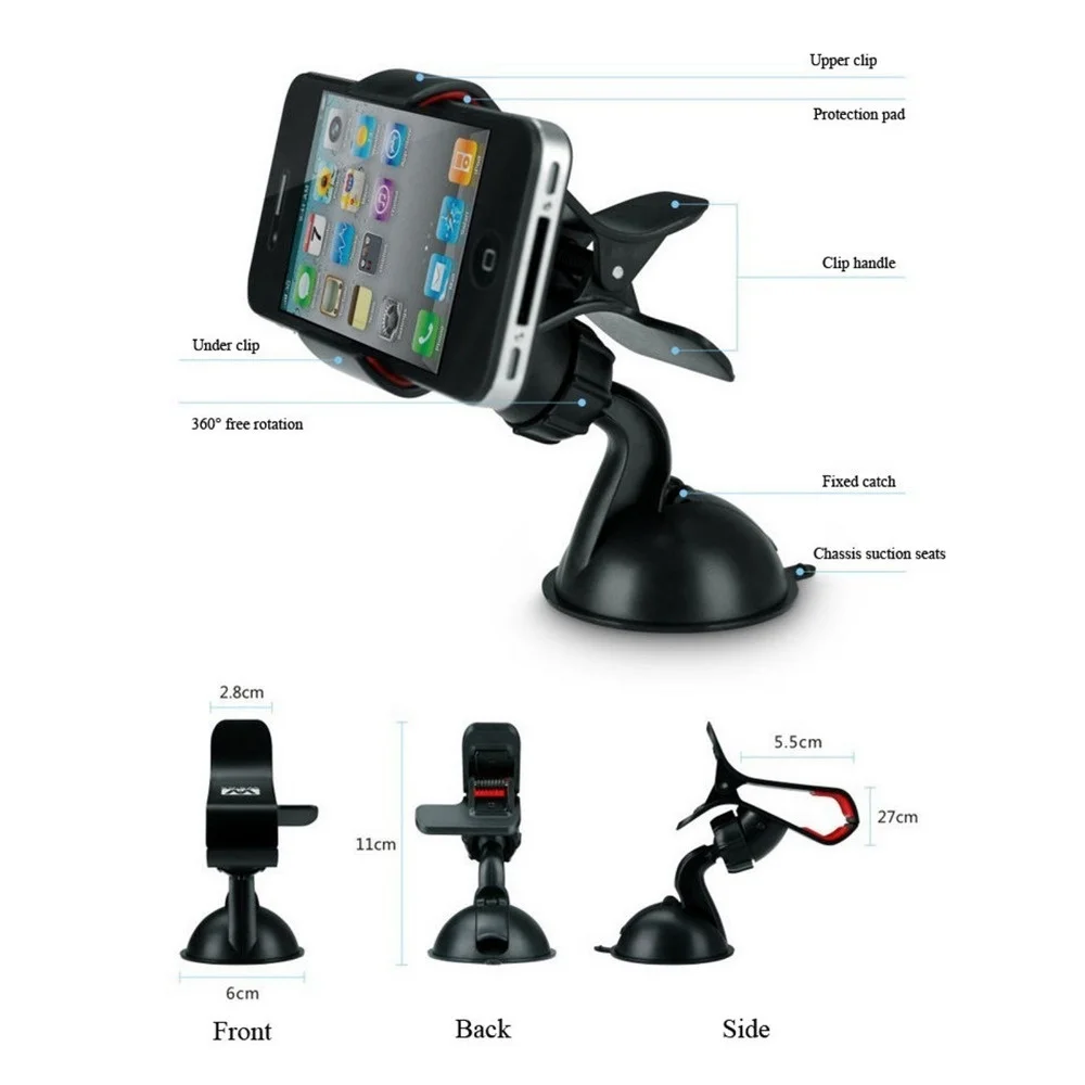 Универсальное автомобильное крепление для смартфонов, GPS, Премиум лобовое стекло приборной панели Автомобильный держатель для всех видов смартфоновПримечание: автомобильное крепление идеально подходит для лобового стекла автомобиля, не подходит для приборной панели автомобиля360 градусов гибкий гусиная шея вращающийся зажим дает вам практически любой угол обзора во время вождения автомобиля.Совместимо с почти всеми мобильными телефонами Размер Мобильный телефон экран 3,2 "-6", открытая max = 90 мм, который обеспечивает ваших смартфонов, включая Iphone, Samsung, HTC, Blackberry, И другие электронные устройства плотно предотвращают падение или перемещение вашего устройства.Длинная гибкая рукоятка позволяет легко позиционировать и доводить шкаф телефона до водителя. Вы можете держать глаза вверх, а не смотреть вниз на свой телефон.Вращающийся на 360 градусов зажим позволяет вам иметь телефон в профиле или ландшафтном режиме.Новейший уникальный дизайн автомобильный держатель с чрезвычайно сильным всасыванием и очень устойчивой поддержкой как для больших экранных смартфонов