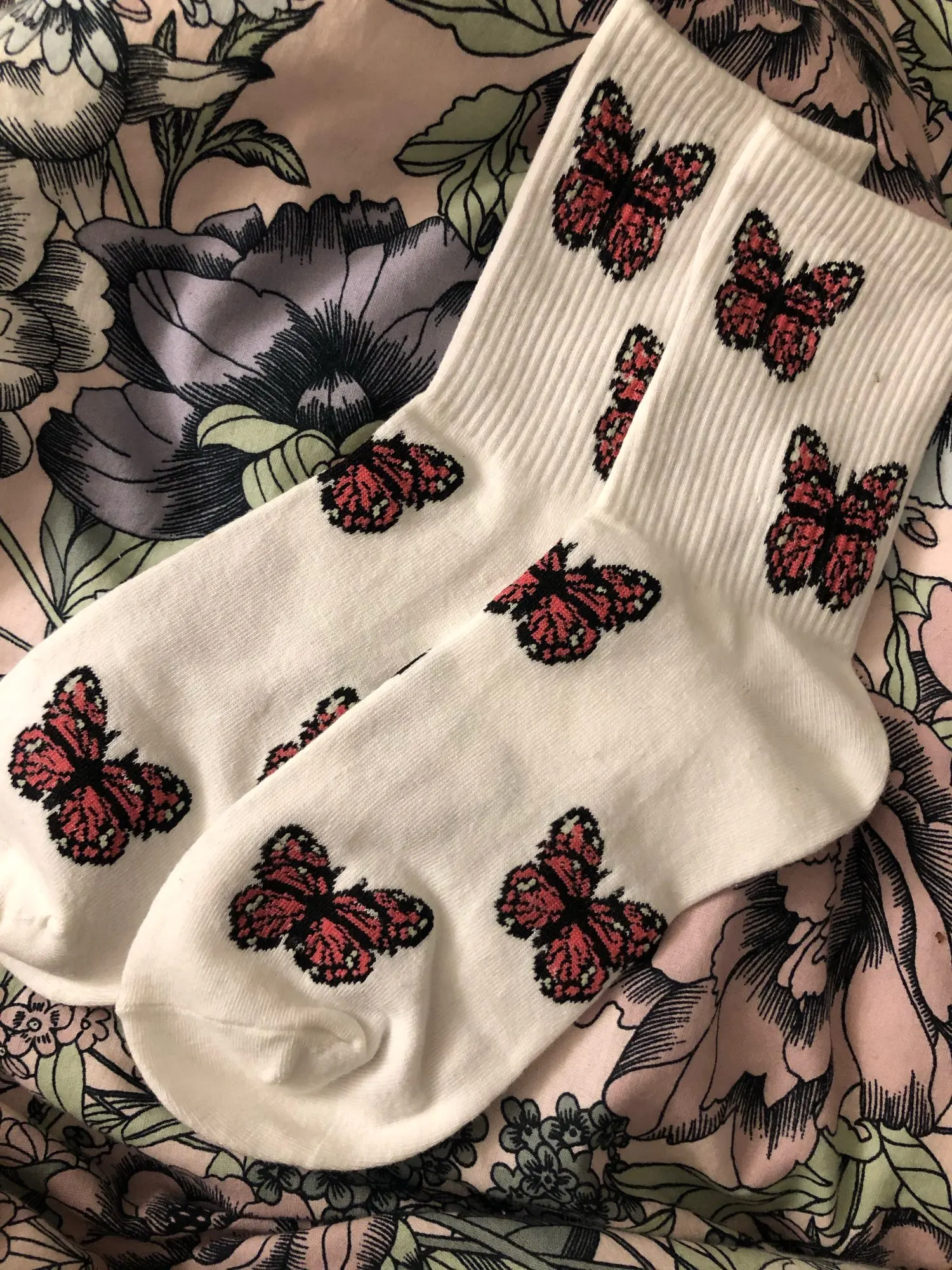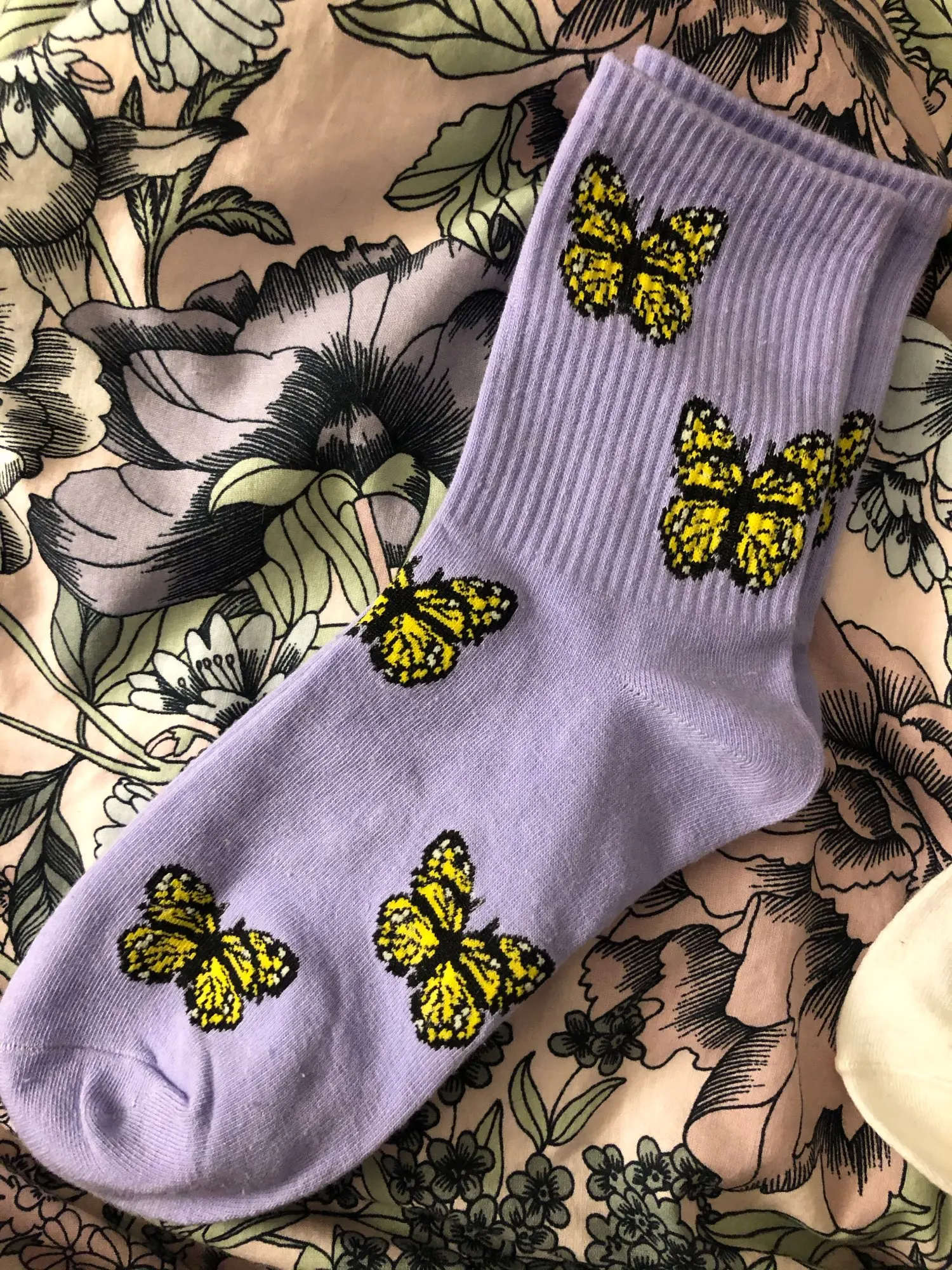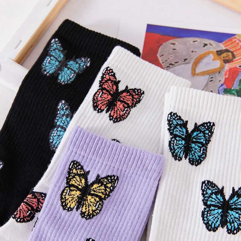 Носки с бабочками женские шерстяные короткие носки в стиле Харадзюку, уличная одежда в Корейском стиле, милые рождественские подарки фиолетового цвета