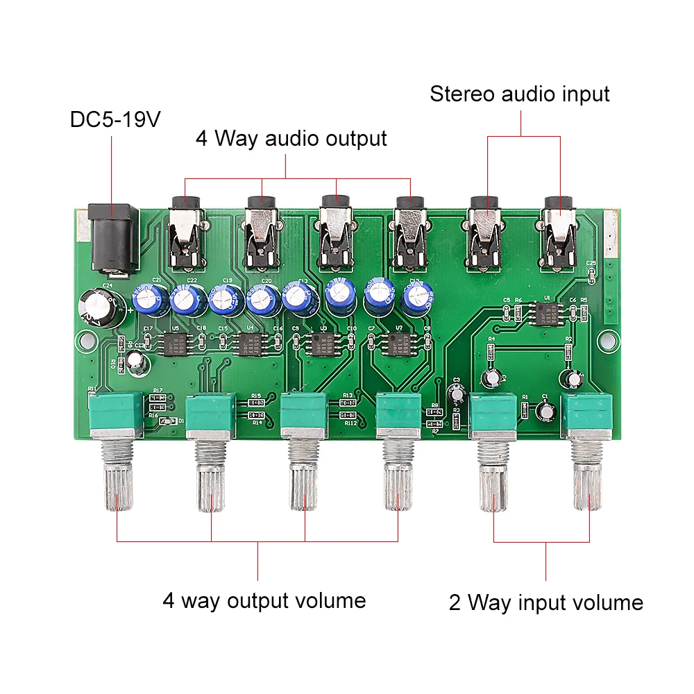 Разветвитель для стереонаушников AIYIMA, 2 входа, 4 выхода, DC5-19V