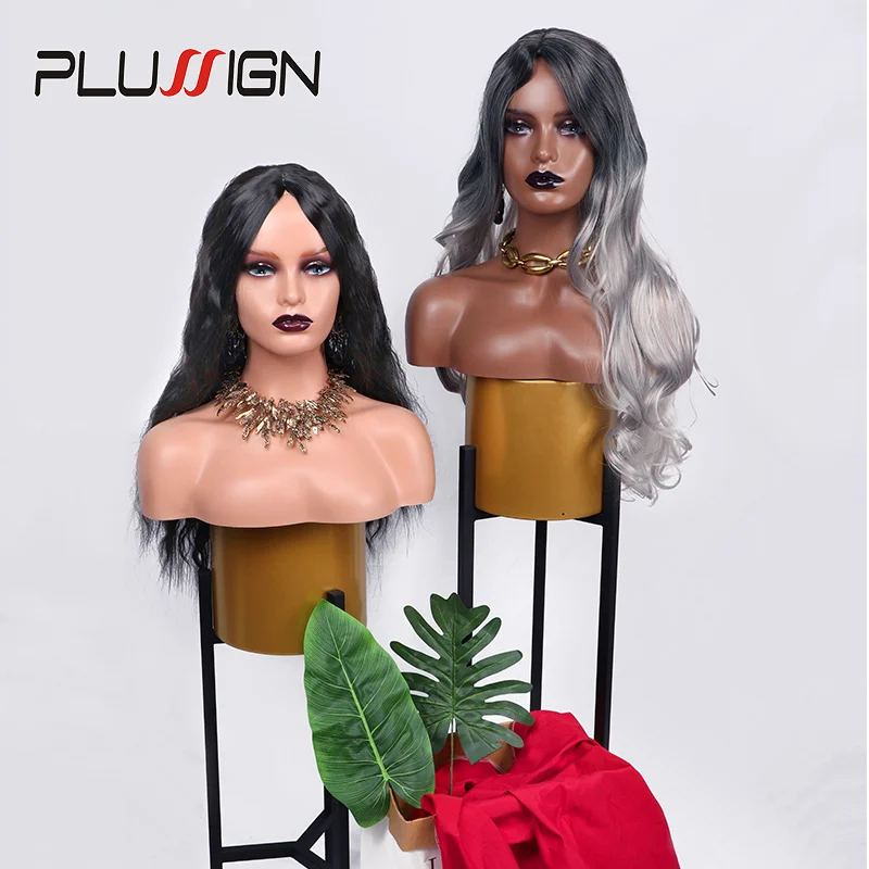 Большой Черный Коричневый Бежевый женский манекен голова с плечами ПВХ