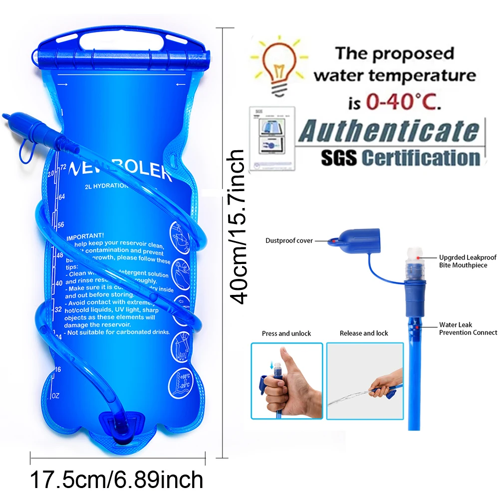 2 л сумка для воды является необязательной, проходит SGS , SGS является ведущей в мире организацией по проверке, проверке, тестированию и сертификации и всемирно признанным эталоном качества и целостности.