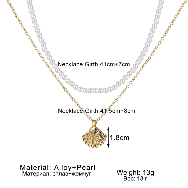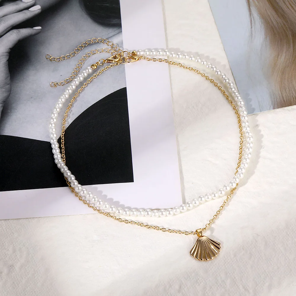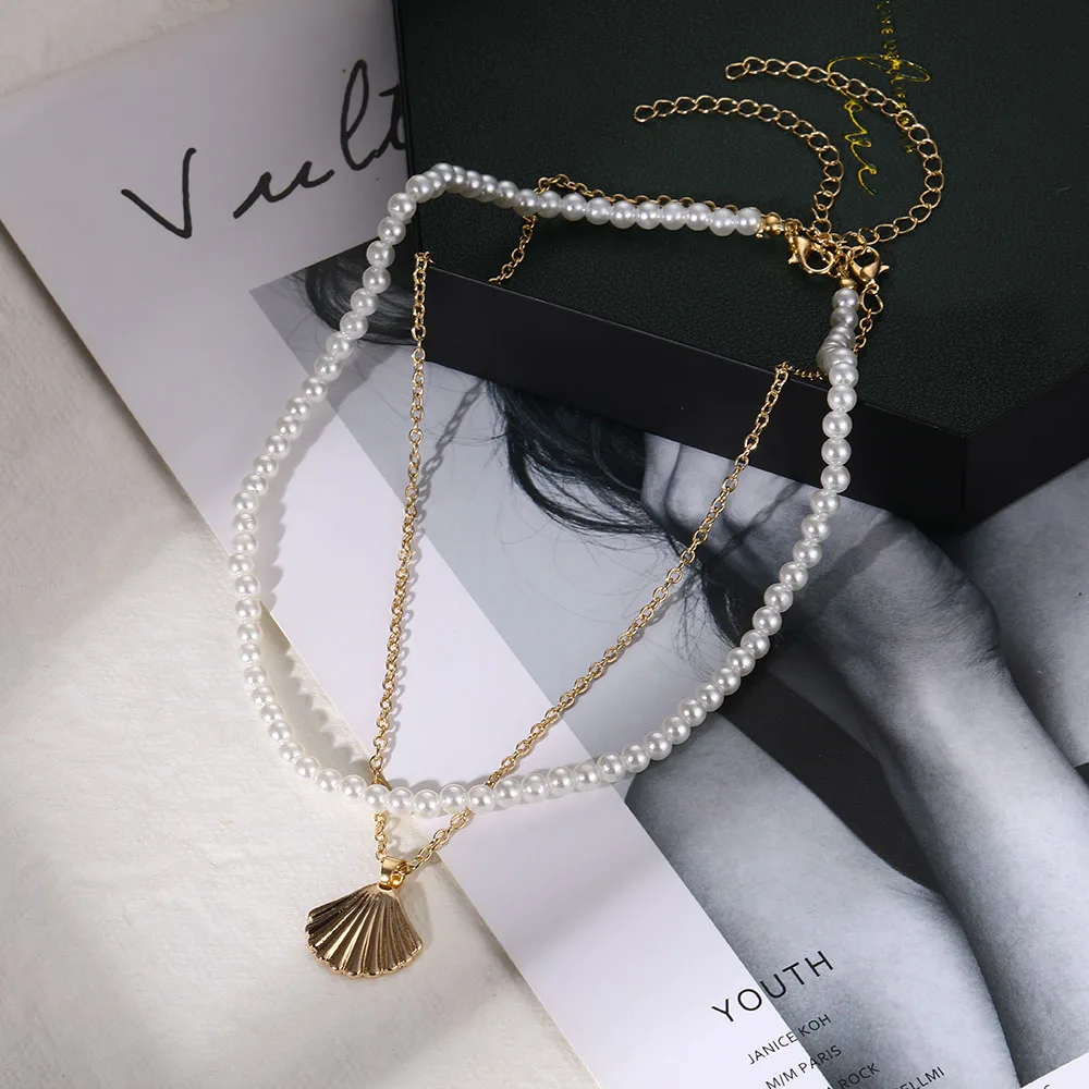 Женское Ожерелье с жемчужной цепочкой ZOVOLI, Двухслойное ожерелье с металлической подвеской в виде ракушки, винтажное простое ювелирное изделие, подарок для девочки