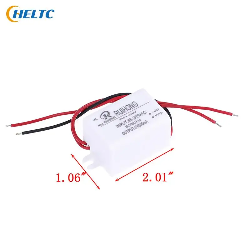 5 в:Номинальный ток: 600 мАДиапазон тока: 0-600 мАНоминальная мощность: 3 ВтПульсация: <150 мВТочность вывода: ± 1%Скорость регулирования напряжения: ± 1%Скорость регулировки нагрузки: ± 1%Переключение: 10%Размер: показано на картинке