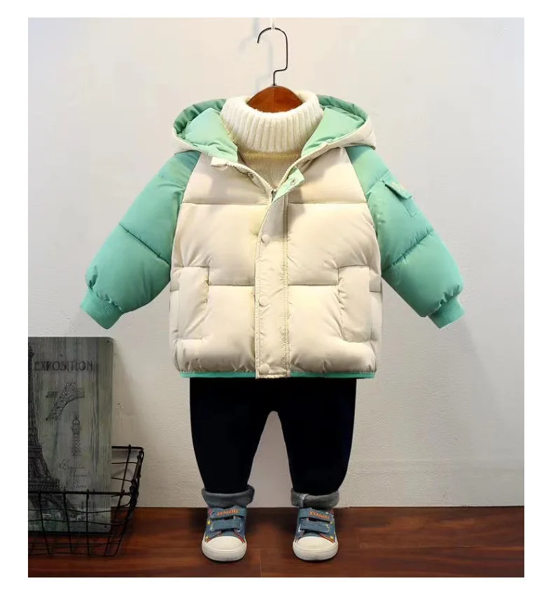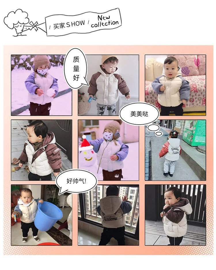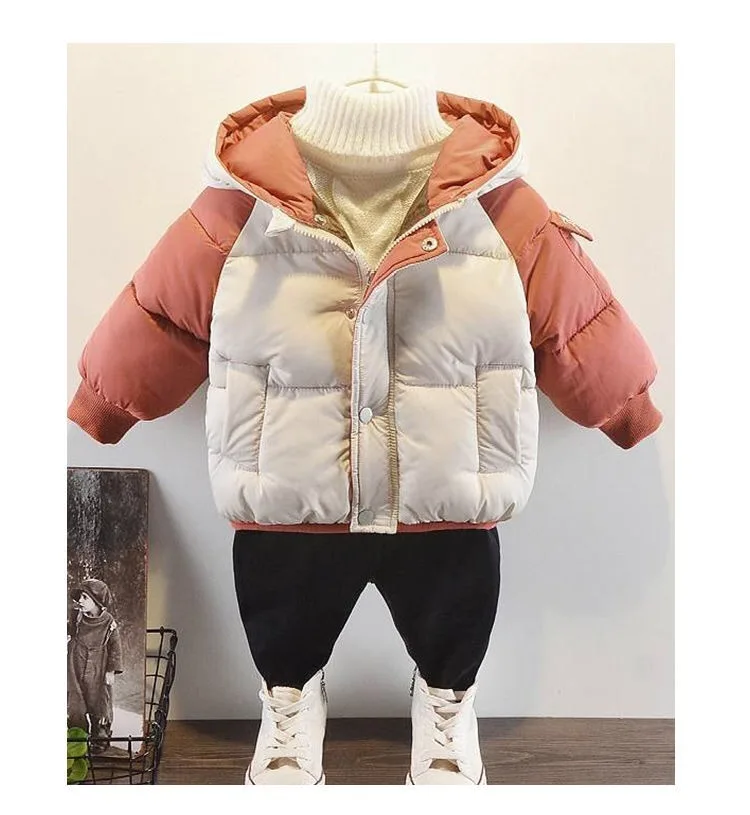 Куртка для маленьких девочек Утепленная зимняя куртка в Корейском стиле для мальчиков теплое пальто с капюшоном для детей детская одежда