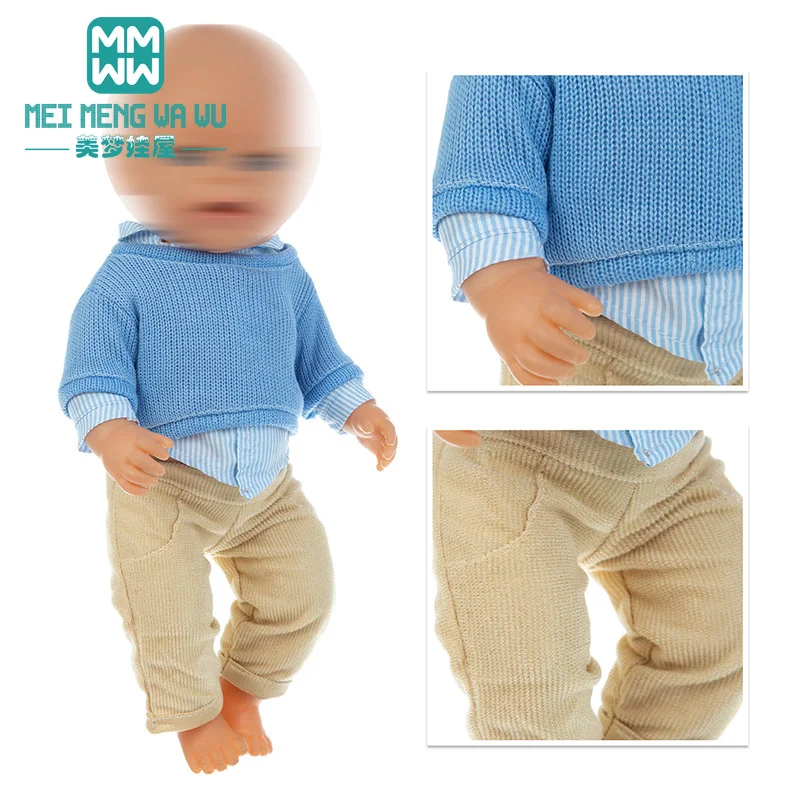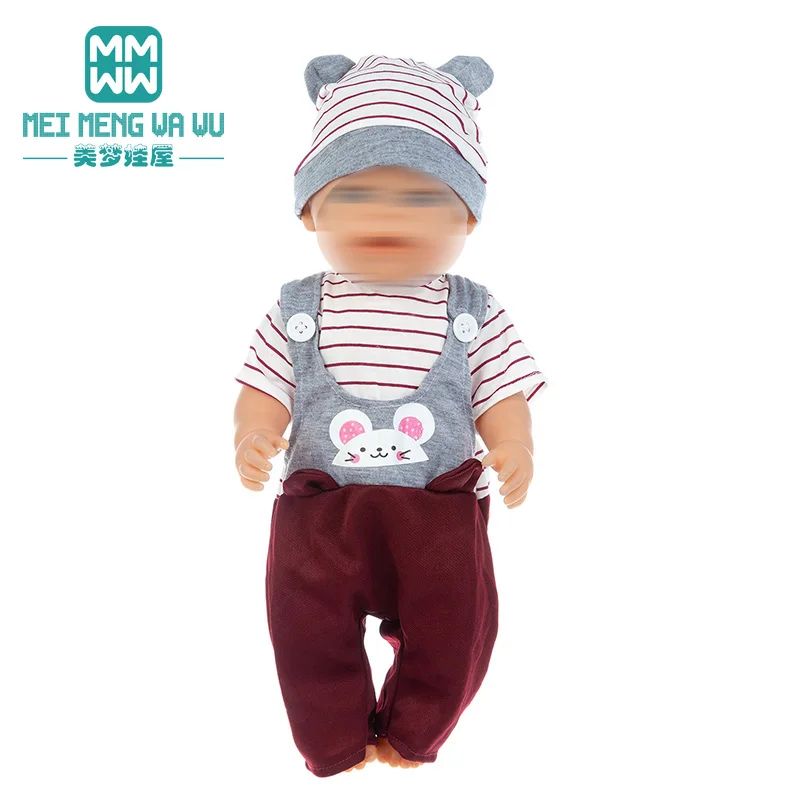 Одежда для куклы, подходит для 17 дюймовых игрушек, аксессуары для куклы, модные Мультяшные штаны на подтяжках, детский вязаный костюм, подарок для детей