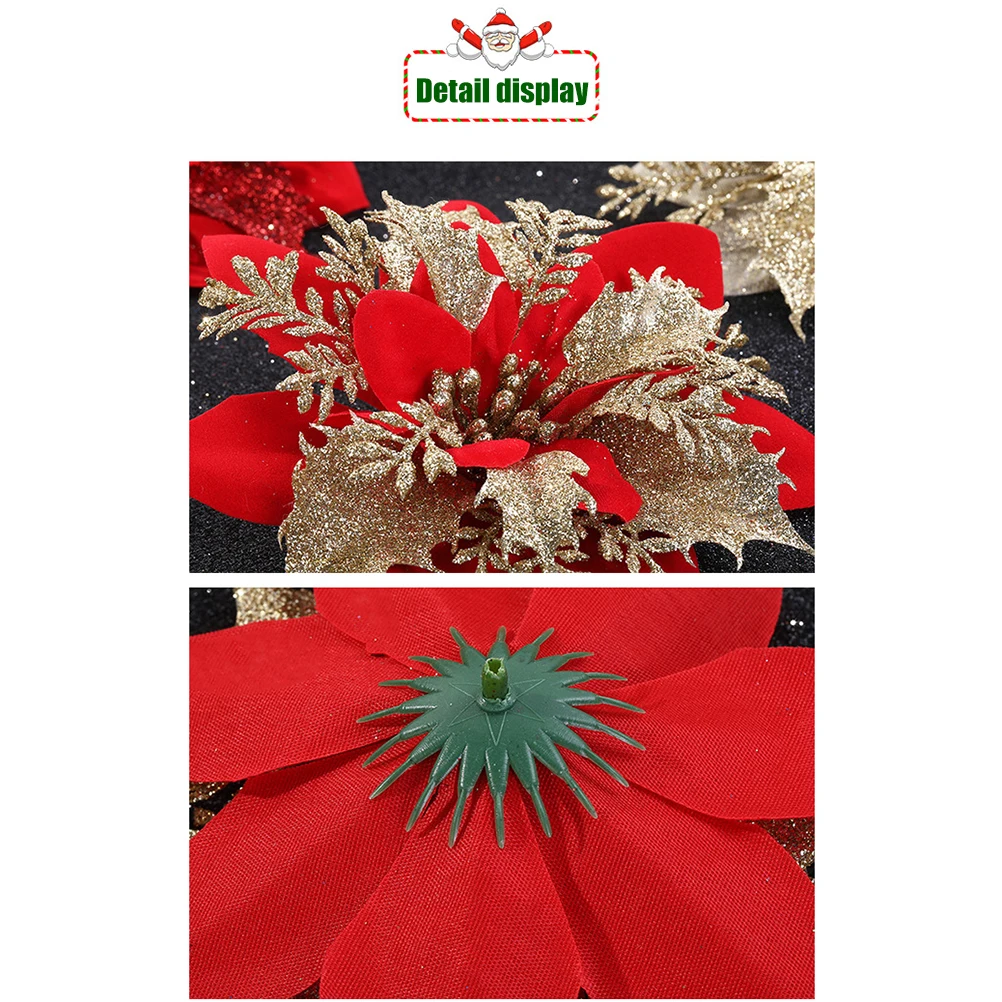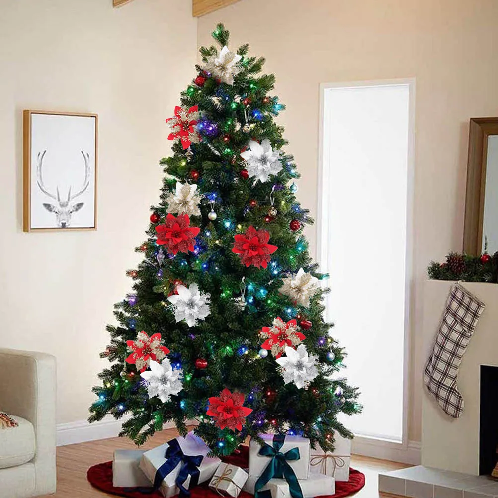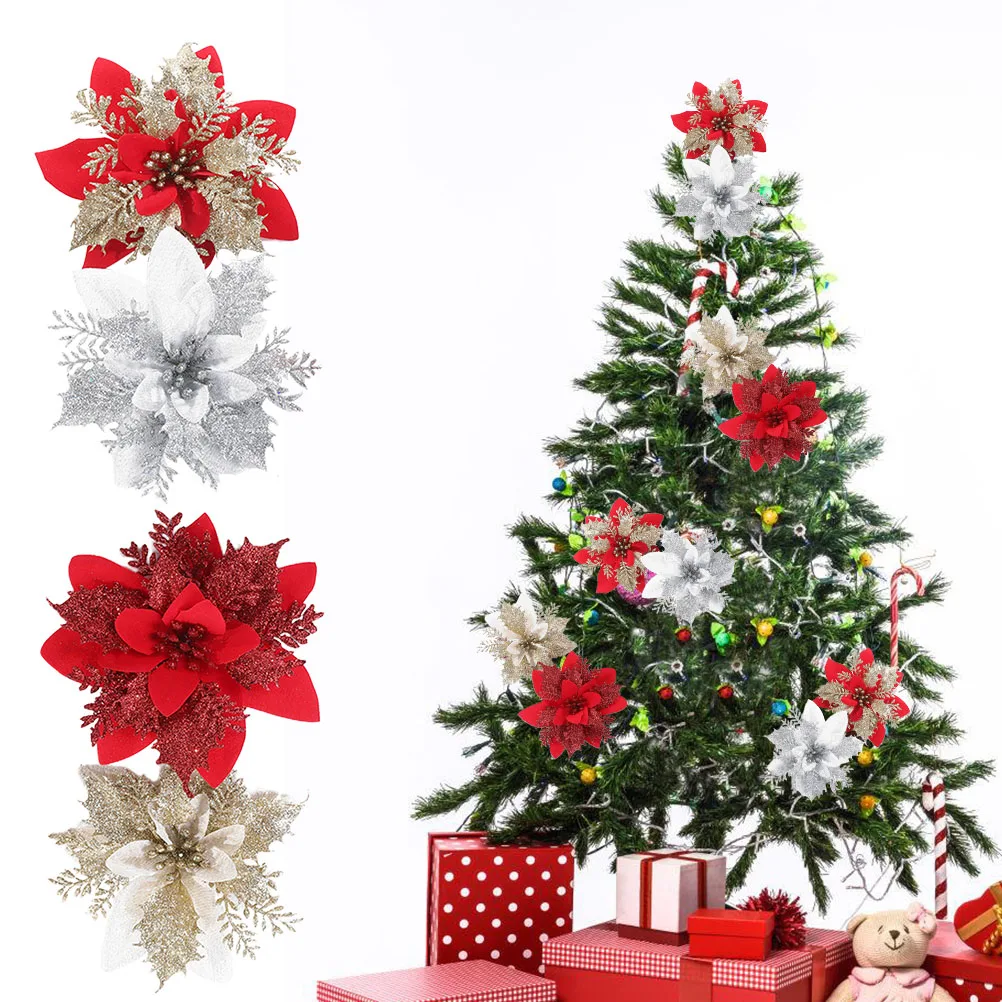 4 шт., искусственные рождественские цветы, блестящие искусственные цветы, елочные украшения, рождественские украшения, подарок