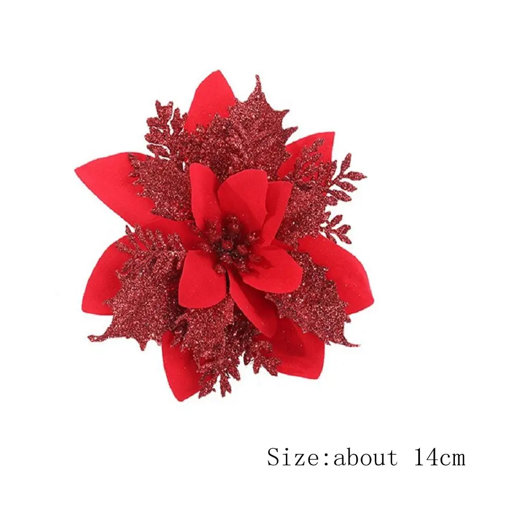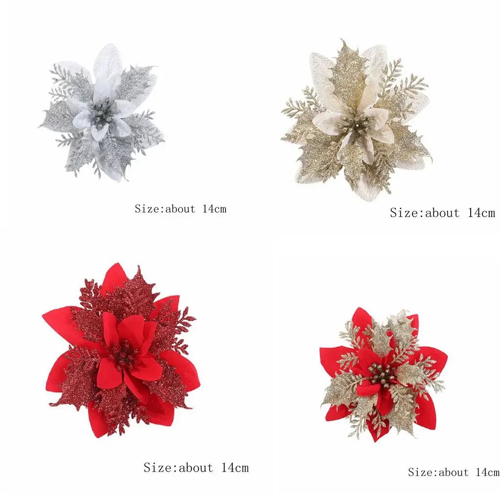 4 шт., искусственные рождественские цветы, блестящие искусственные цветы, рождественские украшения, рождественские украшения, подарок