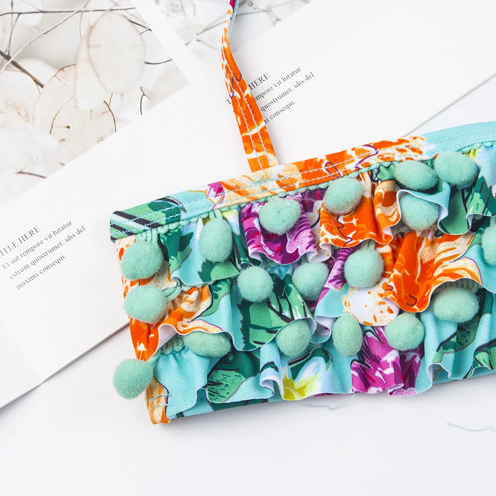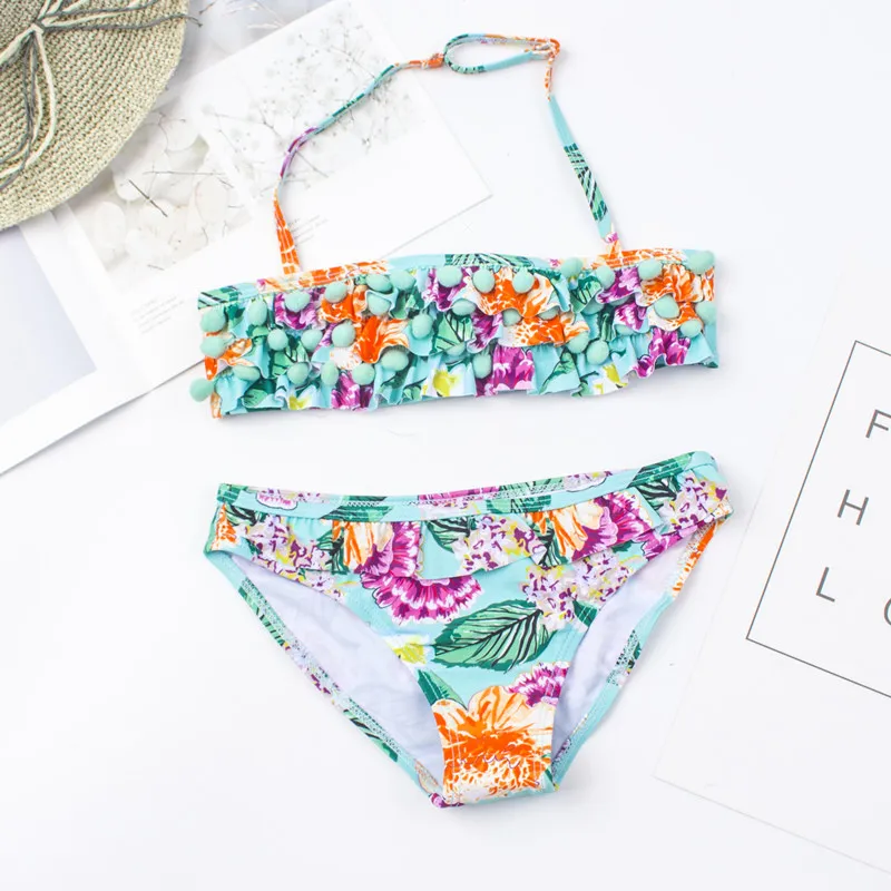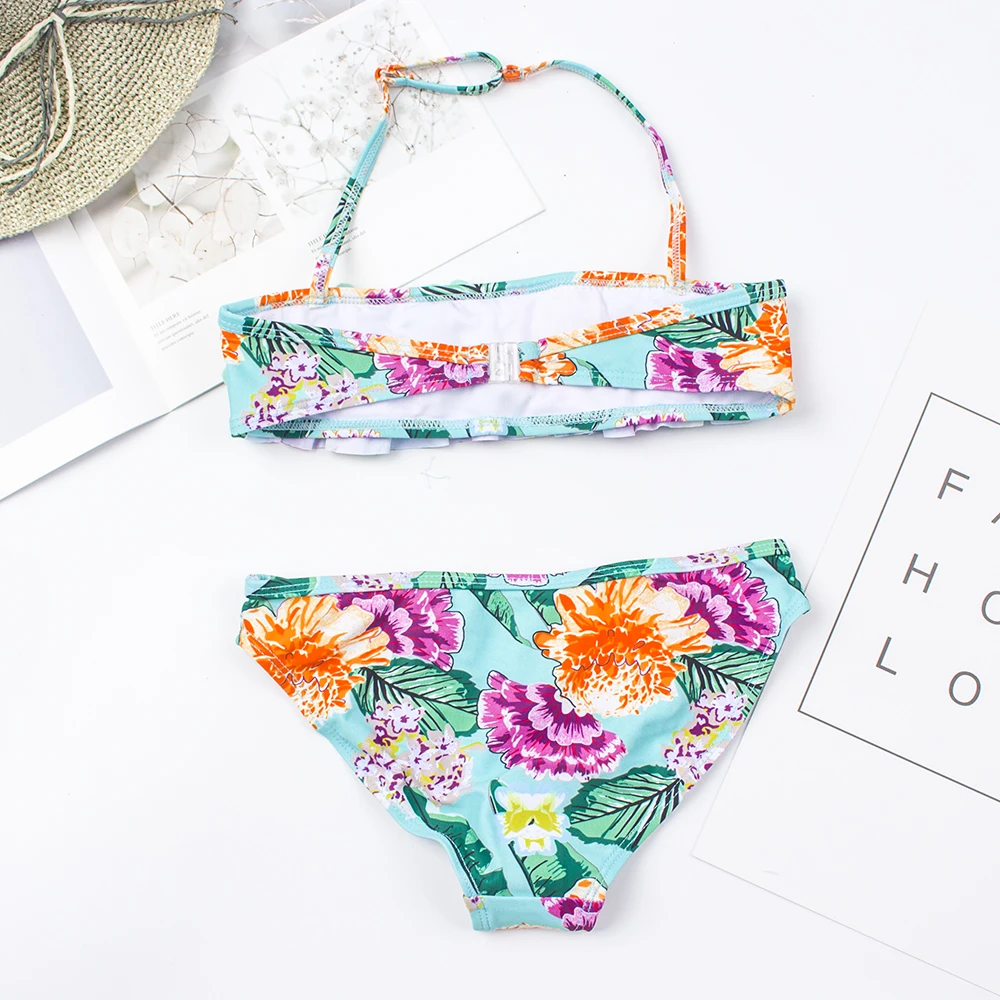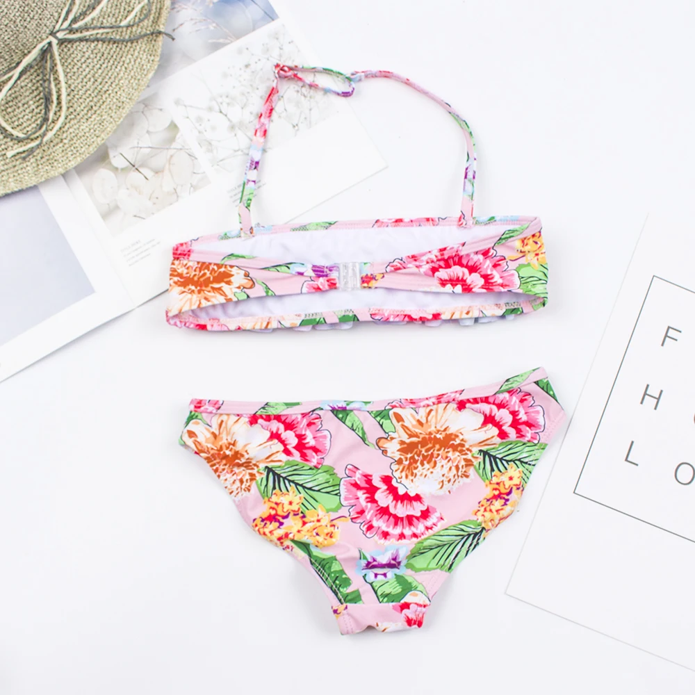 Бандажные бикини для девочек с цветочным принтом, детский купальник, пляжная одежда, 2020 купальники для девочек, детский купальный костюм для девочек Купальник