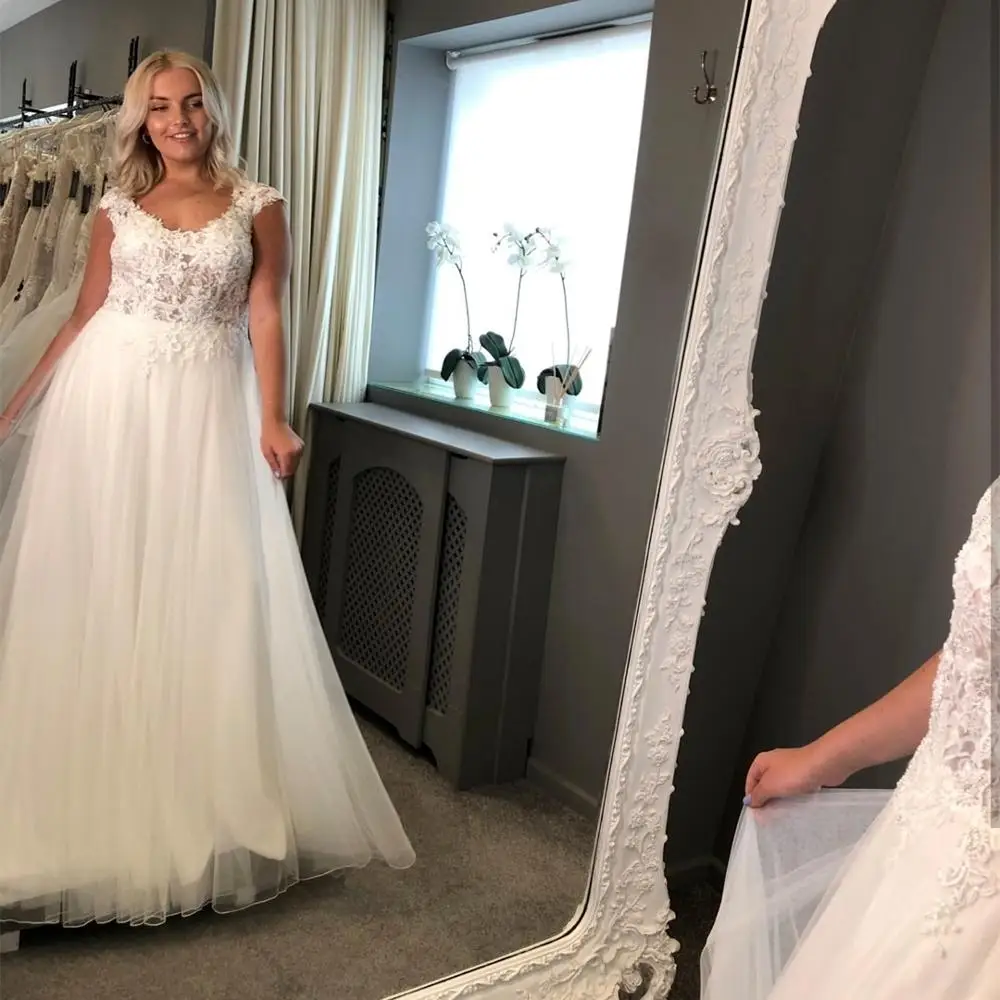 2021 ТРАПЕЦИЕВИДНОЕ свадебное платье для невест Speghetti ремень этаж Длина белого цвета со шлейфом и с низким вырезом на спине элегантное платье с аппликацией из кружева, великолепные