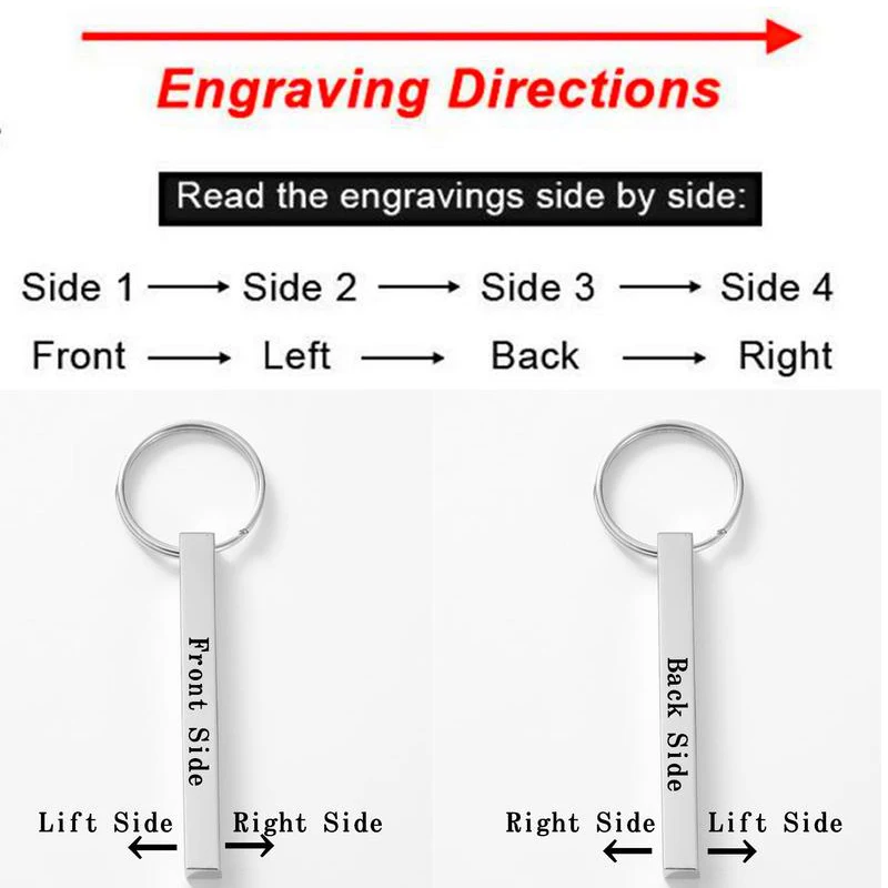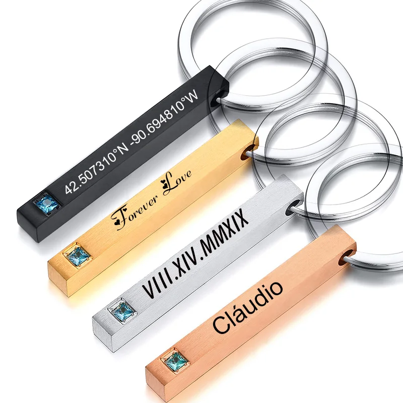 Четыре стороны выгравированы из нержавеющей стали бар брелок настраиваемый брелок для женщин мужчин пар влюбленных унисекс подарки