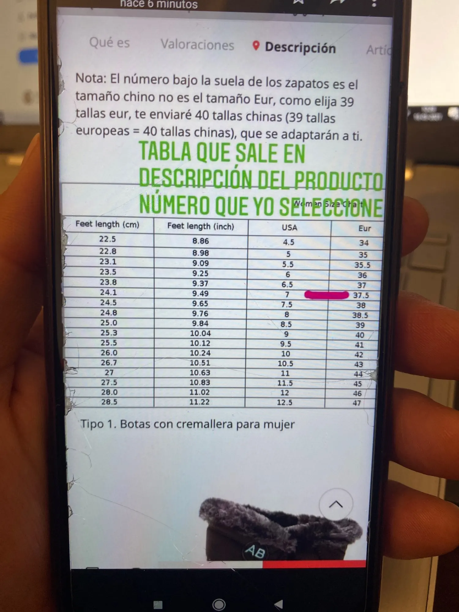 Я попросил номер 7, и они послали мне 8, я открыл спор, и продавец приложил таблицу измерений, которая не появляется в описании, показывая, как я выбрал Неправильный размер, но это огромная подделка, я очень разочарован в отношении лжи продавца, я не рекомендую его вообще из-за лжеца и Манипулятор-манипулятор