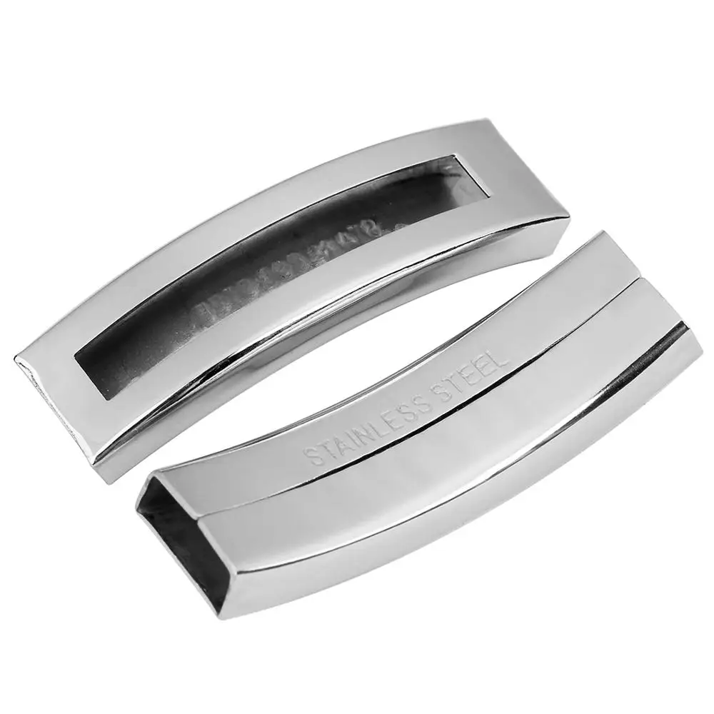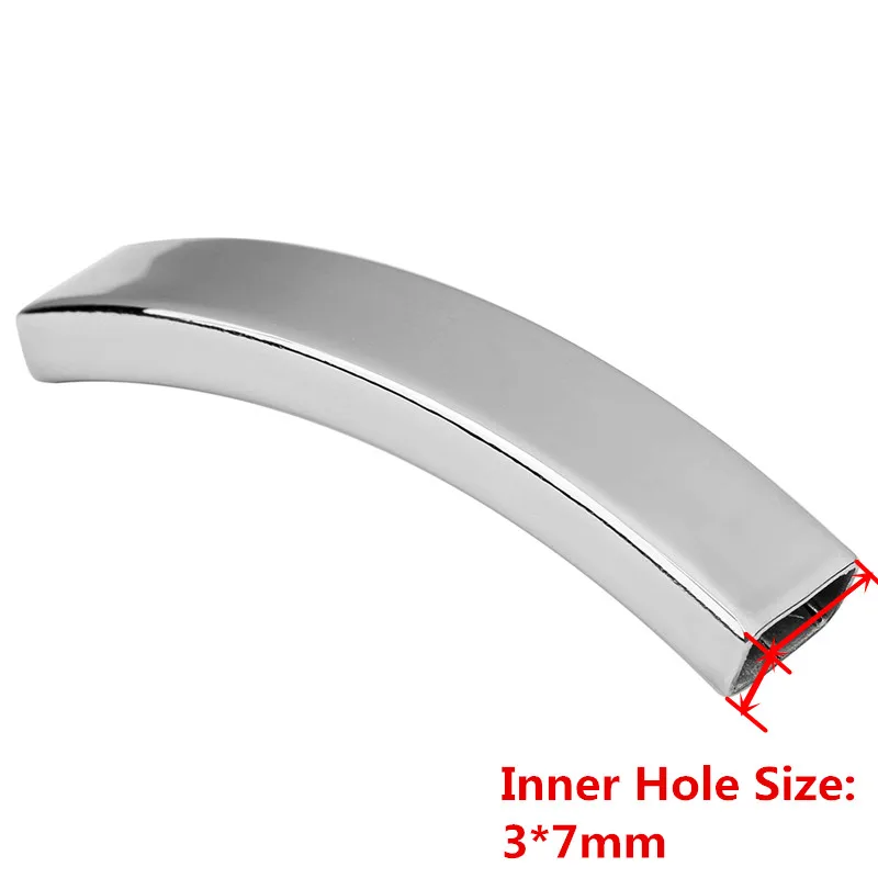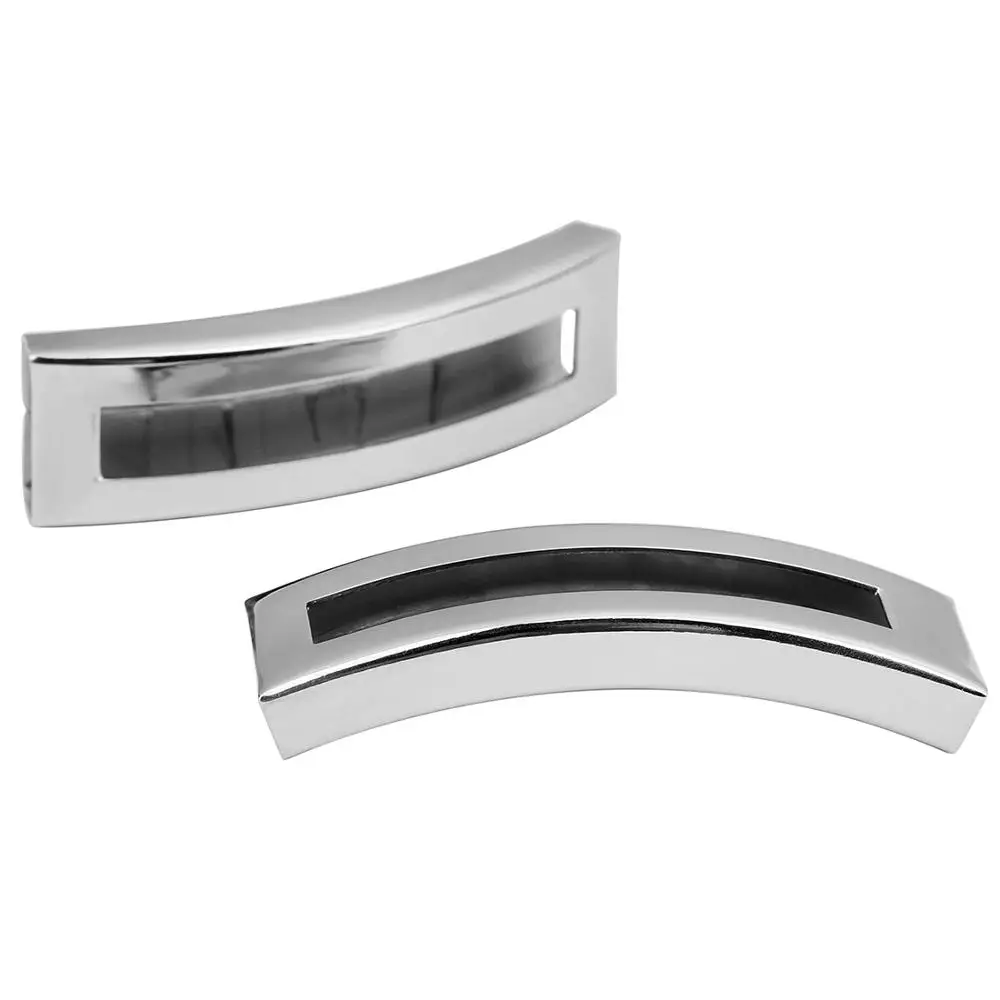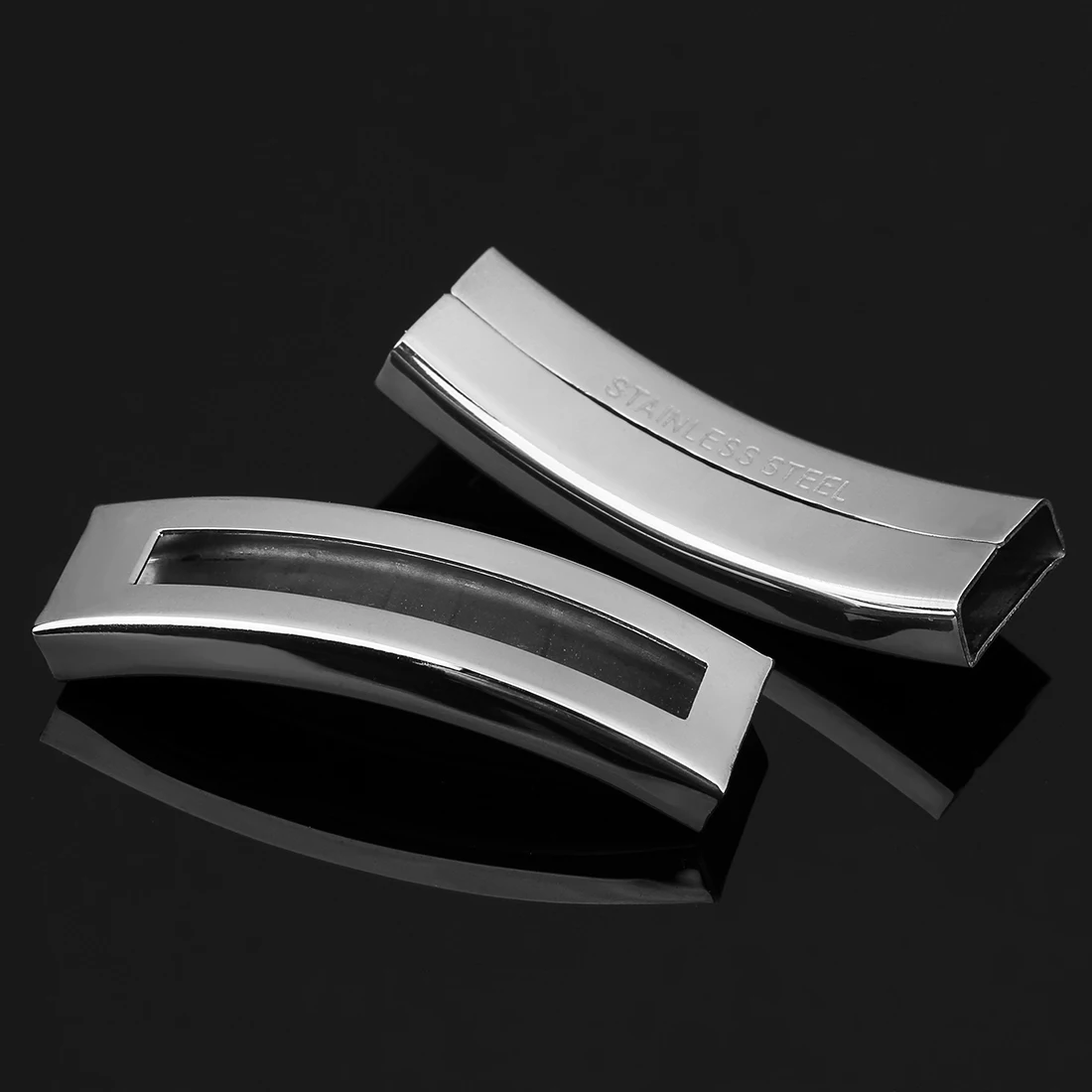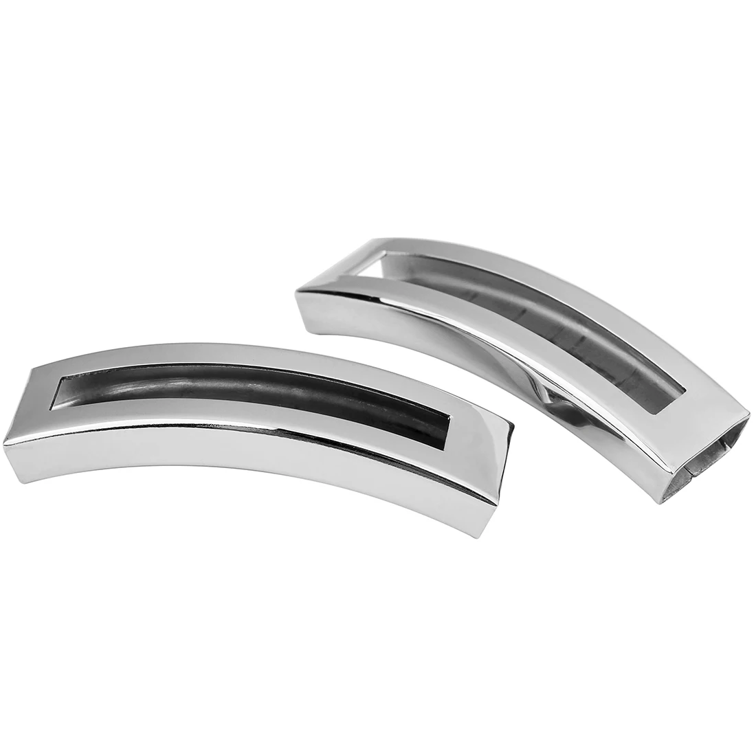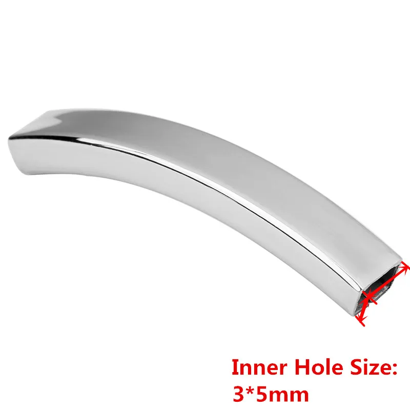 Длинные изогнутые бусины из нержавеющей стали серебристого цвета, плоский шнур из кожи сделай сам для изготовления браслетов, ожерелий, ювелирных изделий, 5 шт.лот