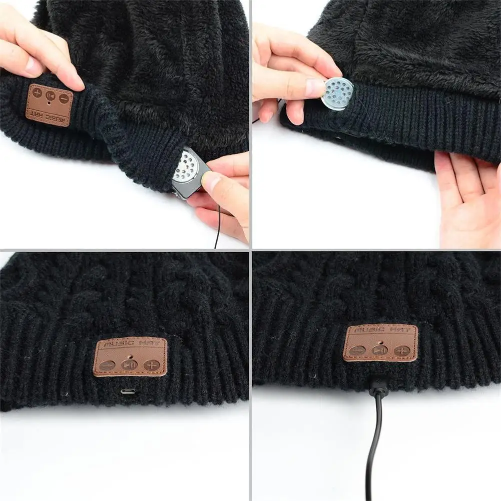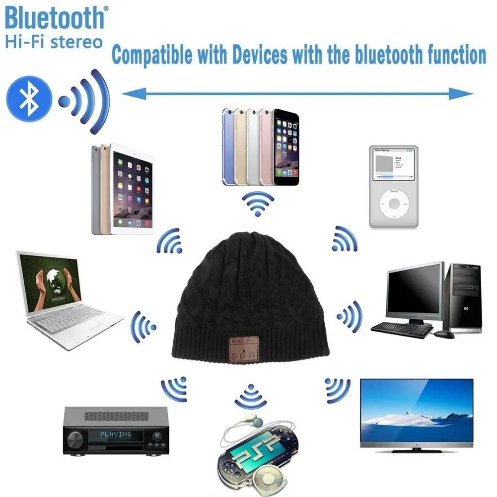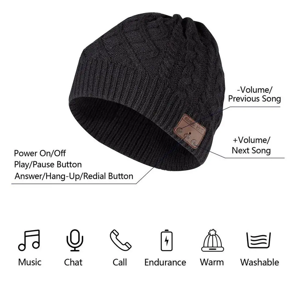 Беспроводные наушники, Спортивная музыкальная шапка, умная гарнитура, Шапка-бини, Зимняя Теплая Шапка-бини с микрофоном, подарок для мальчиков и девочек