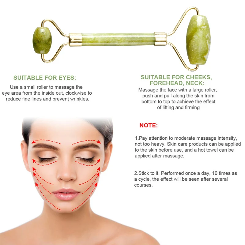 Роликовый массажер для лица гуаша, Нефритовый камень, массажер для красоты и подтяжки лица, средства для ухода за кожей лица против морщин, Нефритовый ролик-массажер