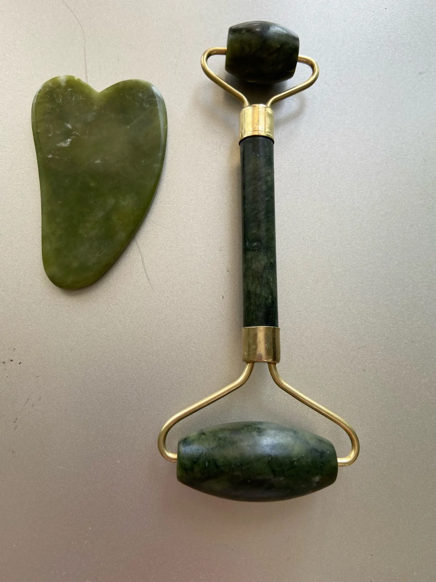 Получила два предмета: роликовый массажёр и гуаша. Удобно в применении. Удобно держать в руках. Камень натуральный. Качество отличное. Я очень давольна результатом покупки рекомендую продавца. Доставка в Сочи была месяц. С продавцом не общалась. Товар соответствует описанию. Упакован просто но хорошо. Заказала второй, чтобы массаж делать сразу с двух рук.