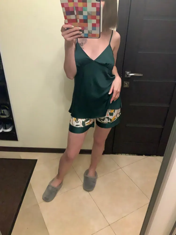 Самое главное в отзыве: разбор по параметрам! У меня 175/90/75/102. Если комплект без шорт, то лучше брать размер Л, я брала ХЛ только из-за них и все равно шорты в облипку, все остальное свободно, но не критично. Материал жесткая синтетика, липнет к телу, может после стирки будет иначе, хотя и приятно наощупь. В топе и ночнушке есть съемные чашки, но они не будут мешать при сне, я думаю, мягенько все. Пришло ровно за две недели, ещё и по новой почте! В целом это больше для того, чтобы перед парнем выглядеть симпатично, одна сплю в хлопковой пижаме :D