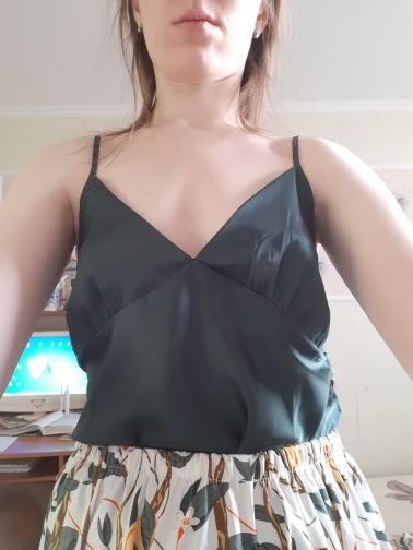 Me encantó el material, las costuras, todo. PERO, soy 36c, y mi pecho se ve ridículo en el espacio que trae la blusa. El ancho cumple, pero no la forma de la blusa de frente. Eso es triste :c