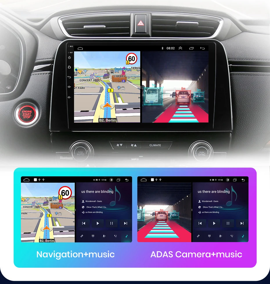 Вы можете использовать навигацию и другие приложения одновременно, такие как прослушивание музыки или включение функций ADAS и т. Д.