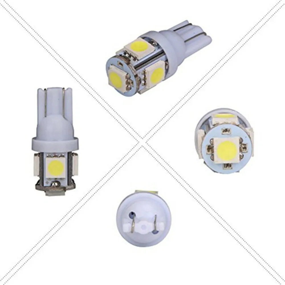 Купольная лампа для чтения T10 W5W 5050 5SMD, светодиодная лампа для автомобиля, 168, 194, 192, 12 В постоянного тока, габарисветильник фонарь, клиновидный свет, белый, синий, 10 шт.