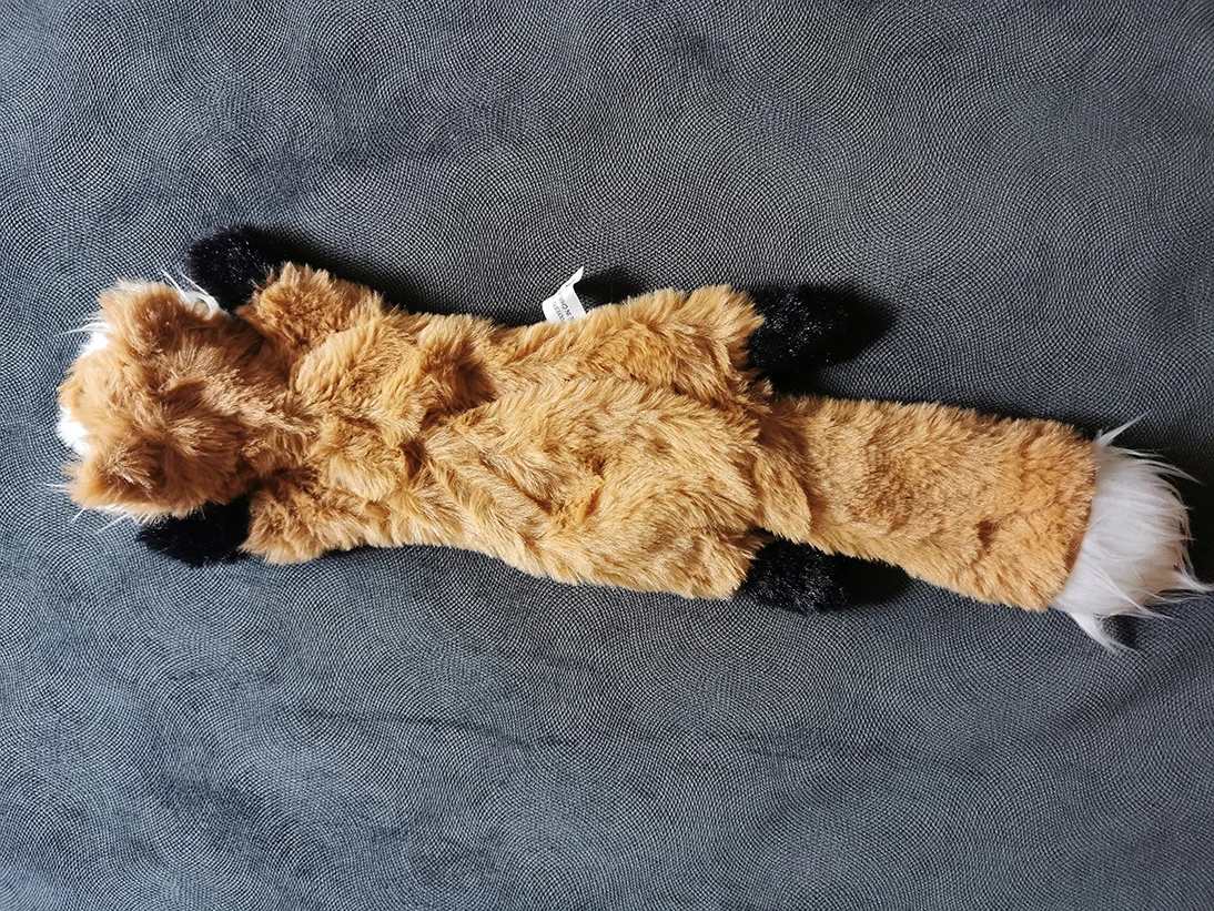 Очень смешная лиса с пищалками в голове и хвосте. Мягкая такая, приятная на ощупь. Песику нравится: дербанит ее)