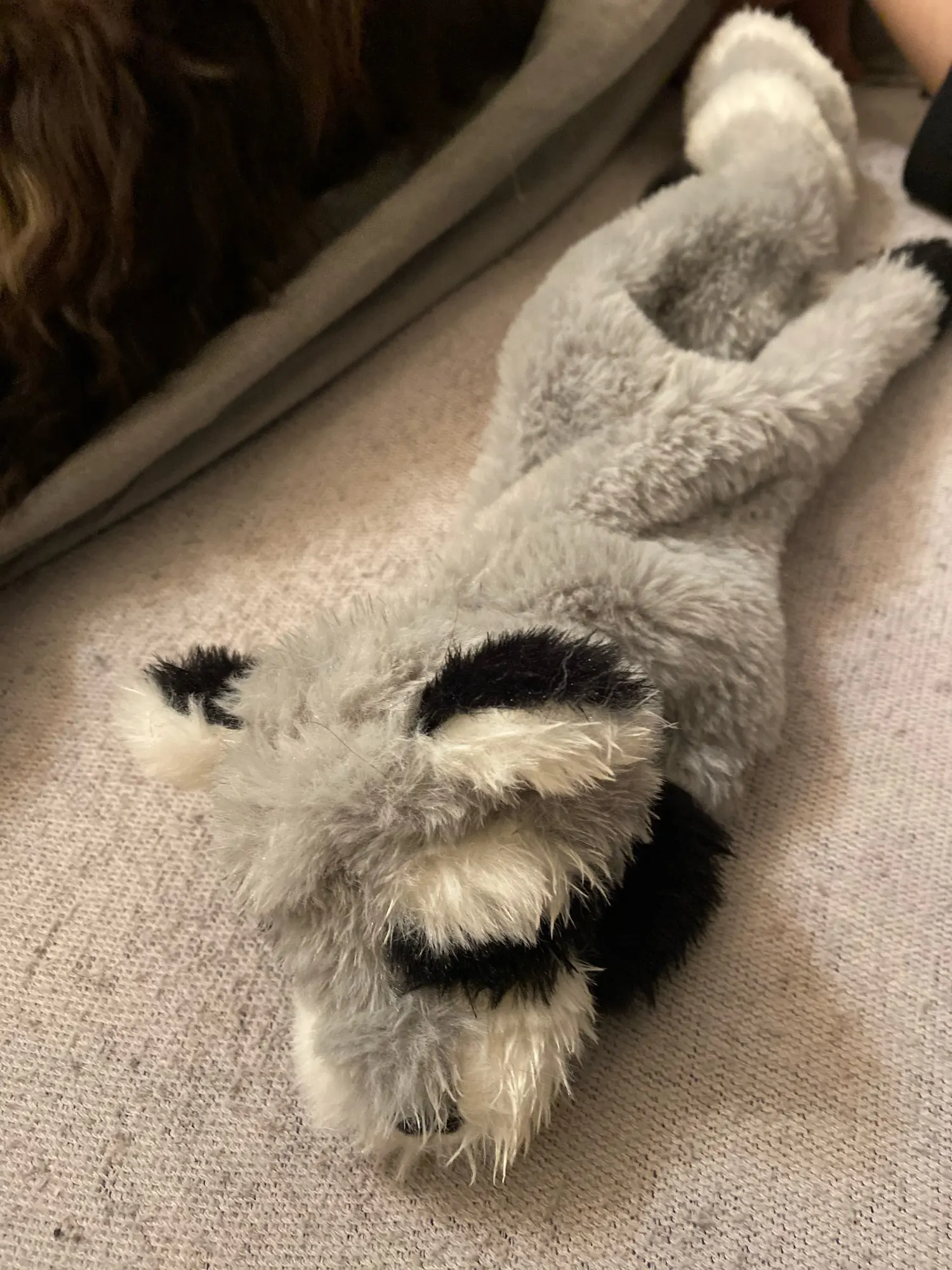 Игрушка нашей собаки длилась 7 минут. Затем он укусил ее голову