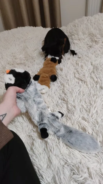 Сейчас у нас много таких товаров. Наша собака любит Двойной писк (в голове и хвосте), длинный и плоский-легко протирать и очень мягкий. Мы купили пару дополнительных средств, чтобы подарить друзьям.