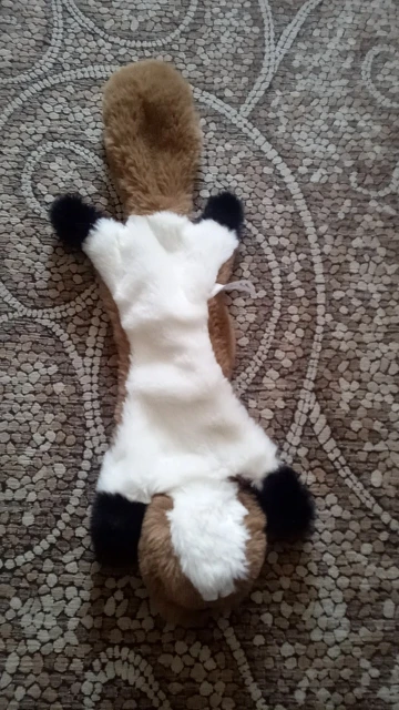 Отличная штука, собака играет с удовольствием, очень прочная, можно тянуть и не рвется. Пищалка в хвосте и в голове. Подойдёт для тех собак у кого есть охотничий инстинкт