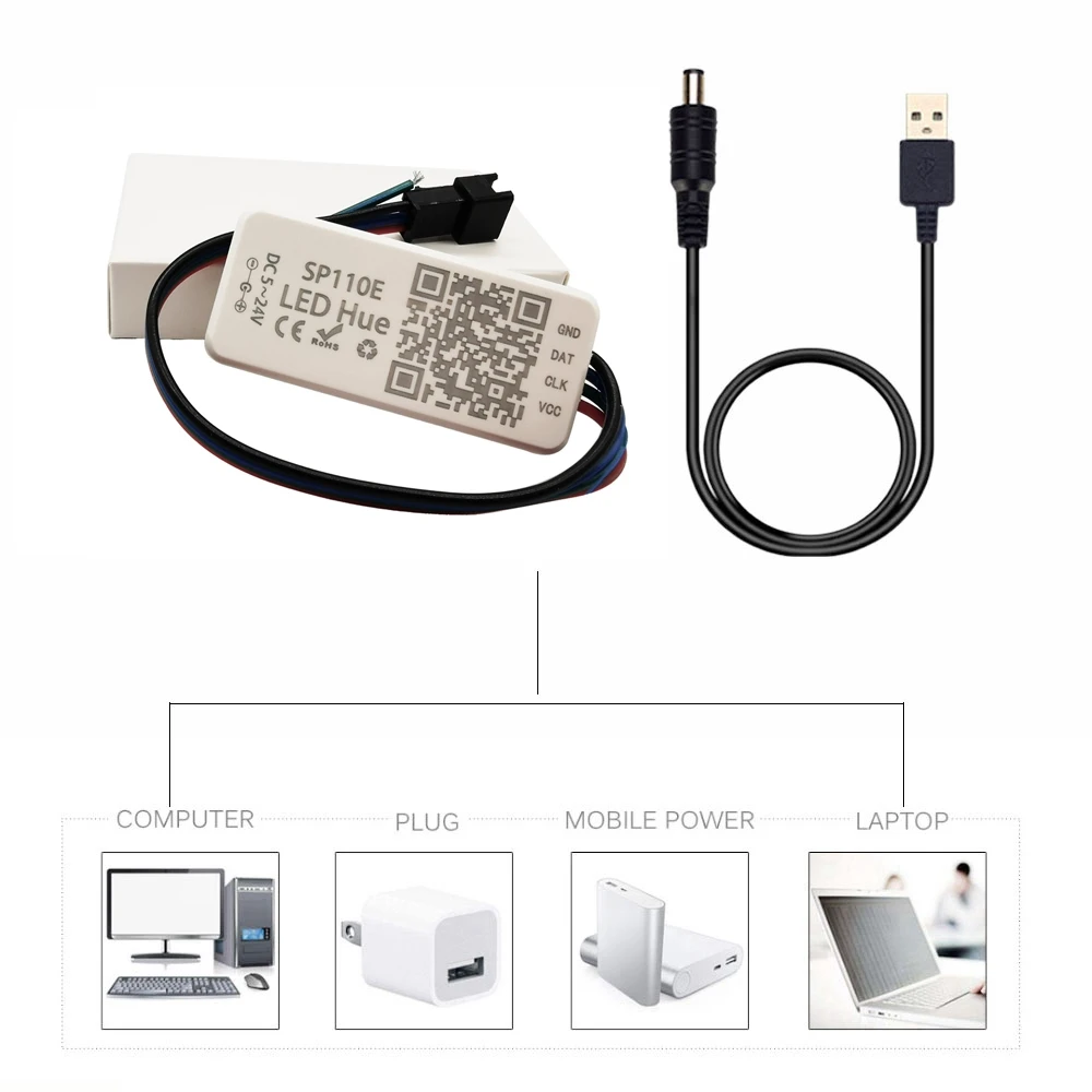 Индивидуально Адресуемая светодиодная ленсветильник WS2812B DC5V с USB SP110E, комплект Bluetooth-контроллера, 3060144 пикселей, легкое использование на улице
