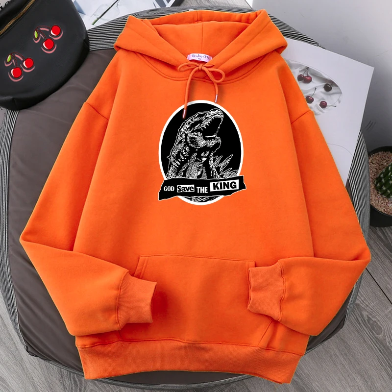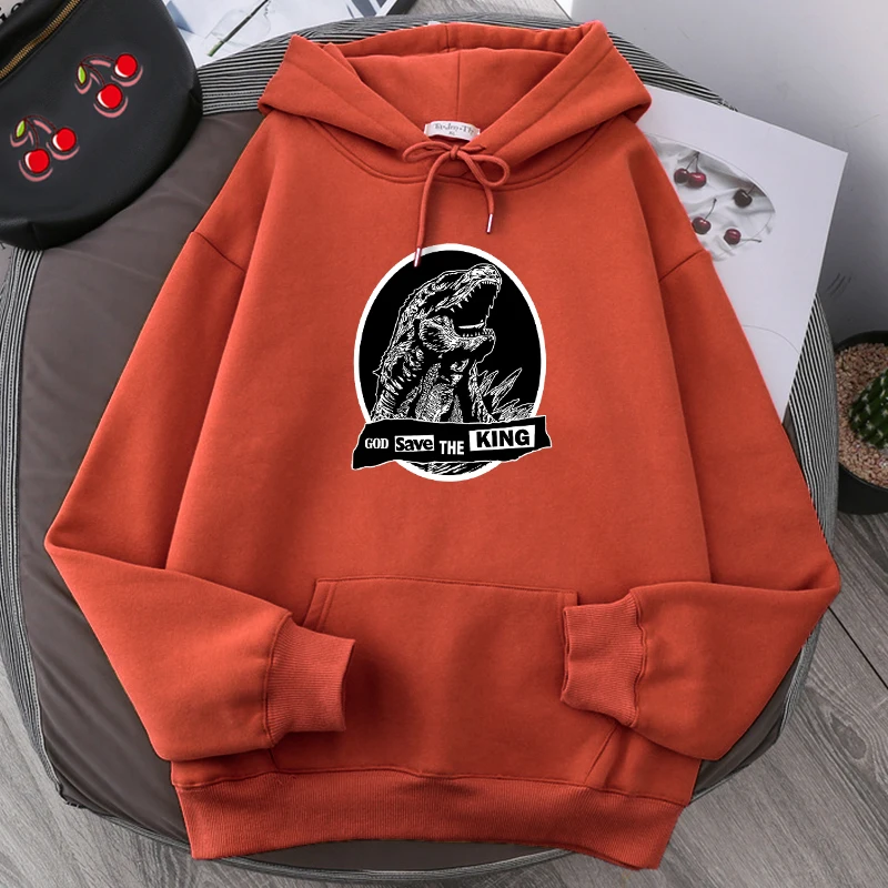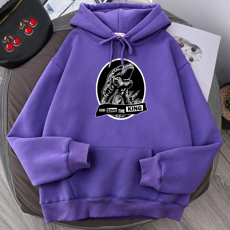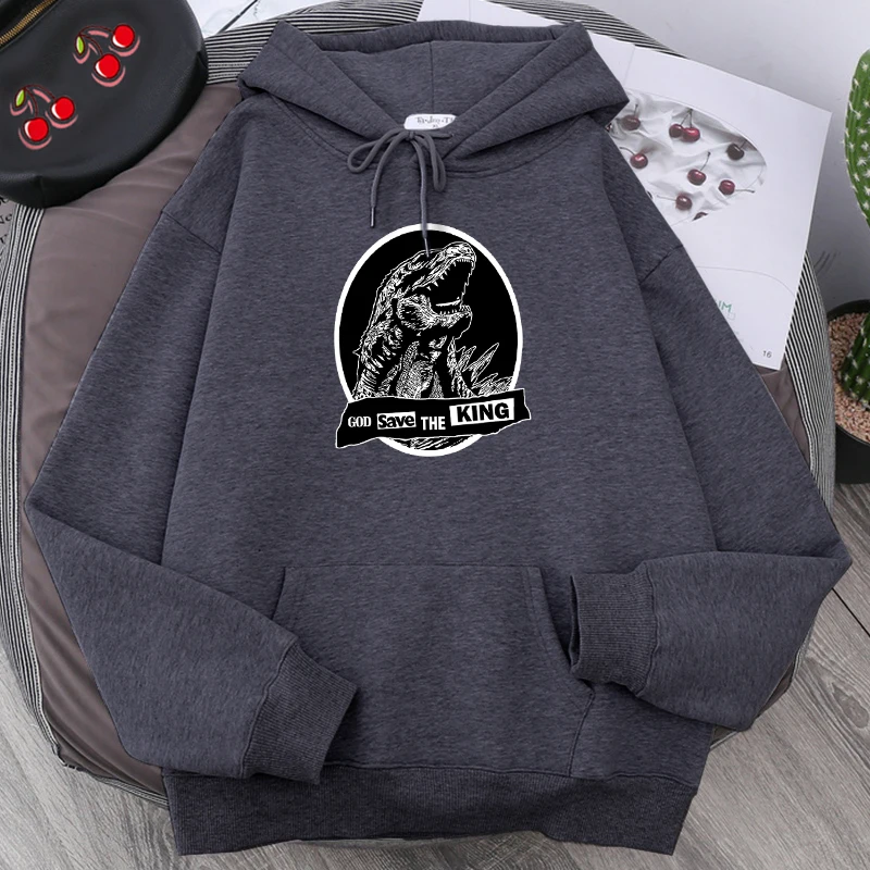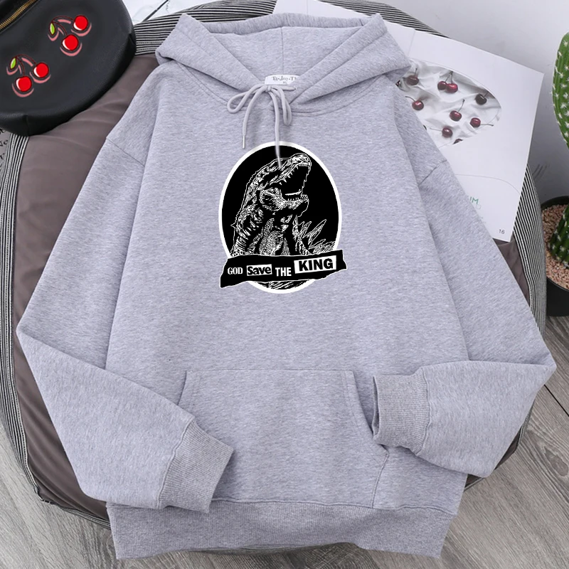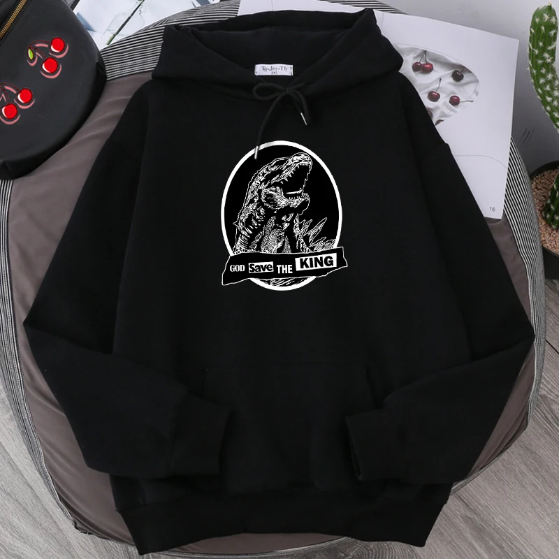 Пуловер с принтом динозавров и надписью God Save The King, Осенние повседневные толстовки, Флисовая теплая толстовка, худи в стиле хип-хоп, уличная одежда в стиле Харадзюку