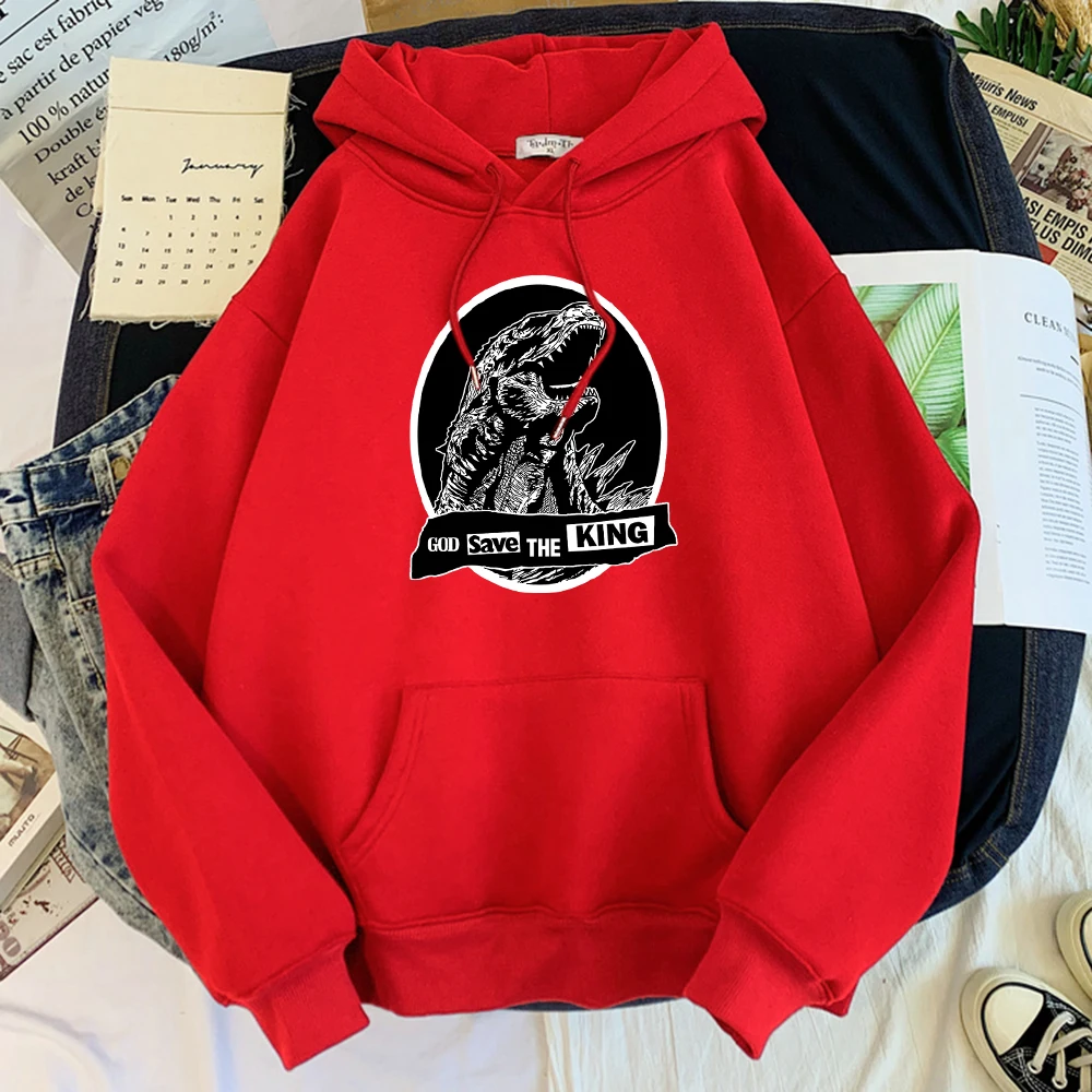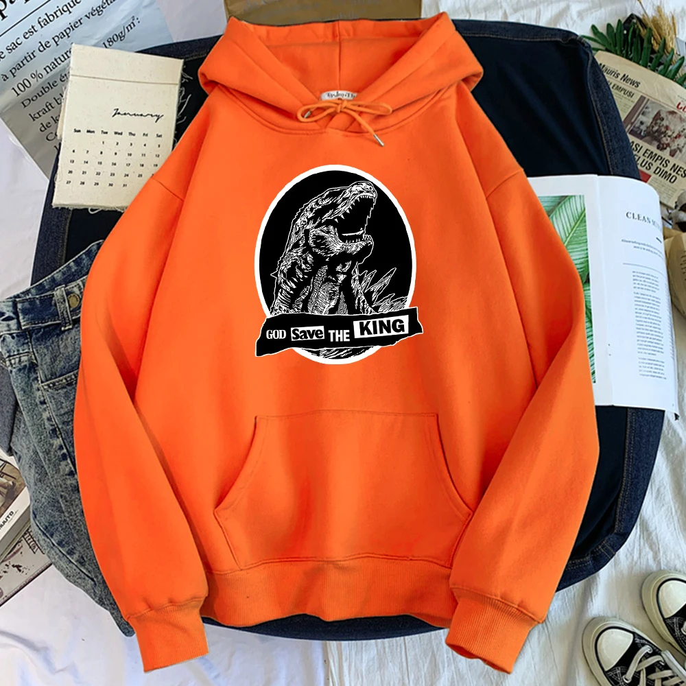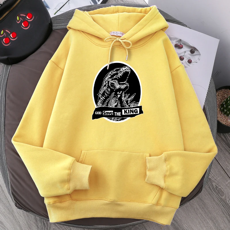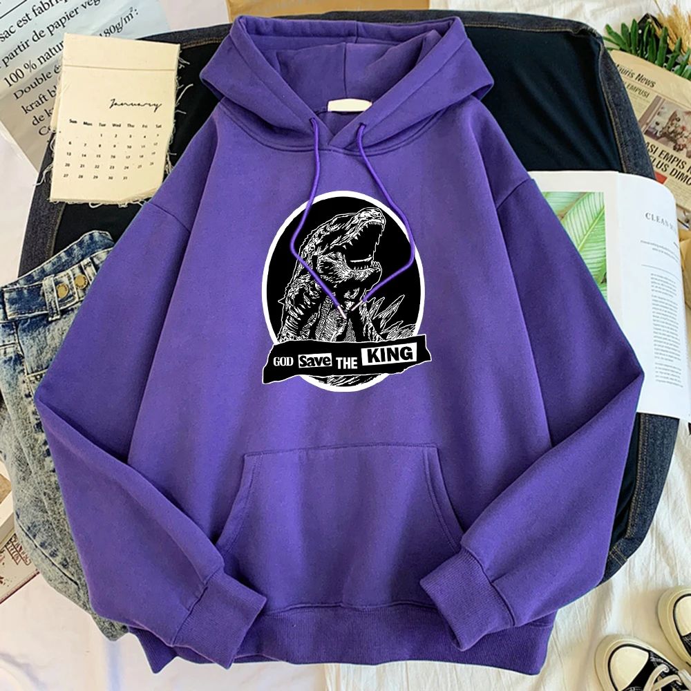 Пуловер с принтом динозавров и надписью God Save The King, Осенние повседневные толстовки, Флисовая теплая толстовка, худи в стиле хип-хоп, уличная одежда в стиле Харадзюку