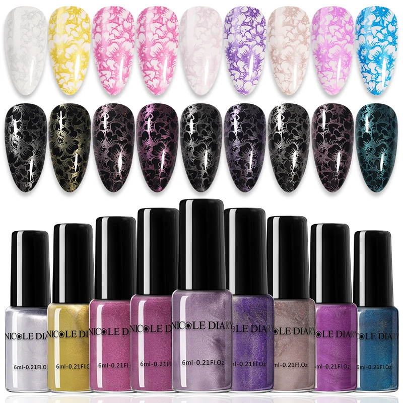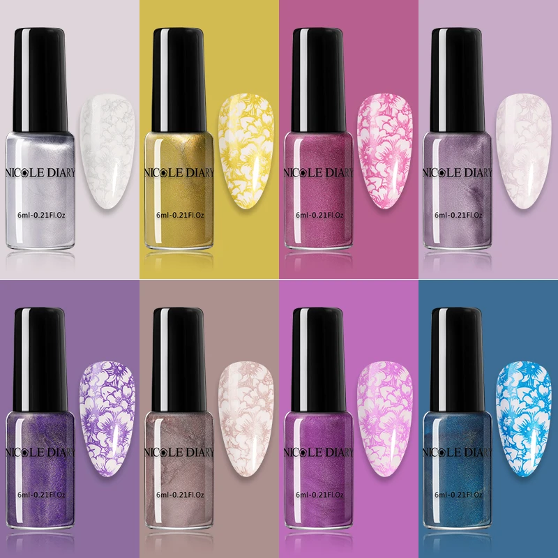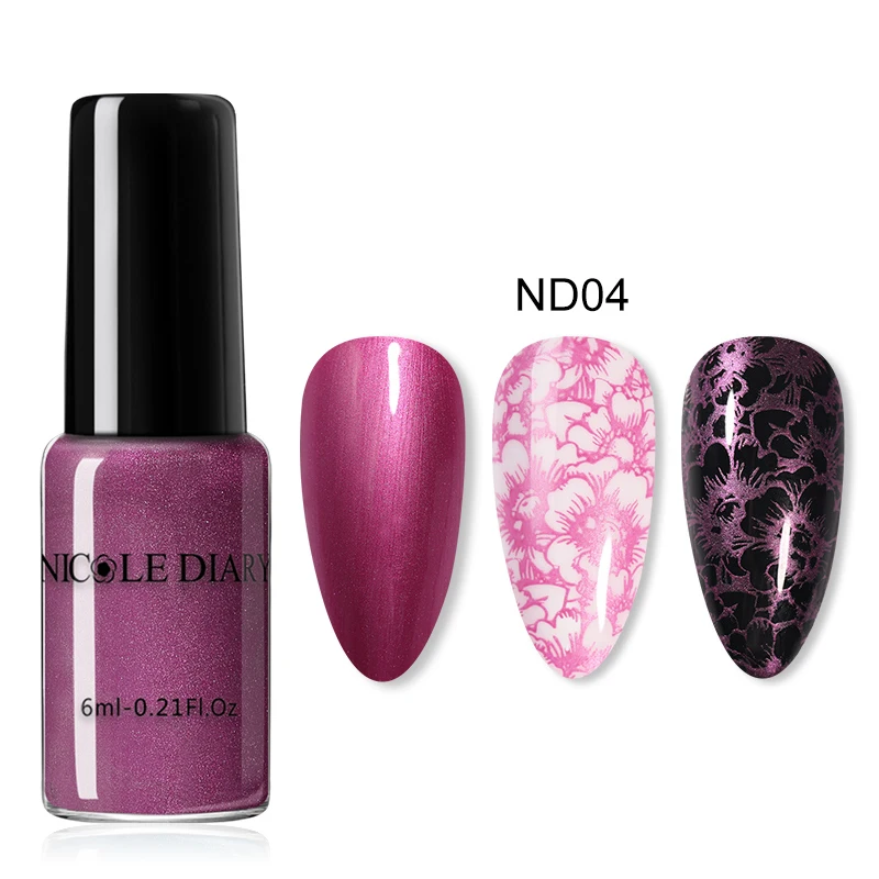 Лак для стемпинга NICOLE DIARY, металлик, золото эффект серебряного зеркала, лак для нейл-арта, синий, фиолетовый, для пластин