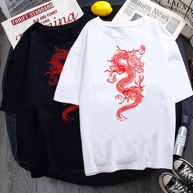 Футболка женская с драконом, уличная одежда в стиле Харадзюку, топ ...