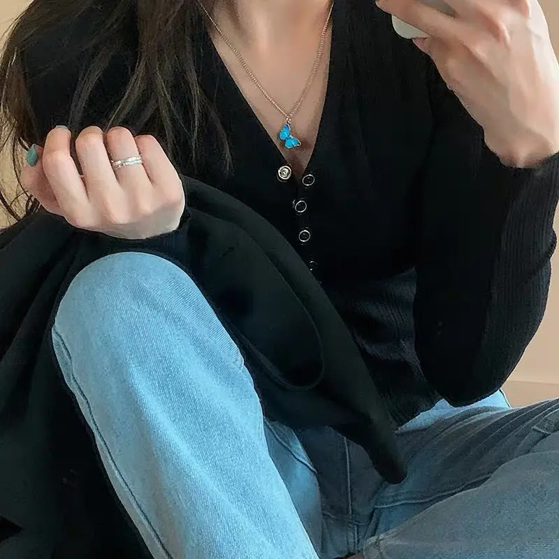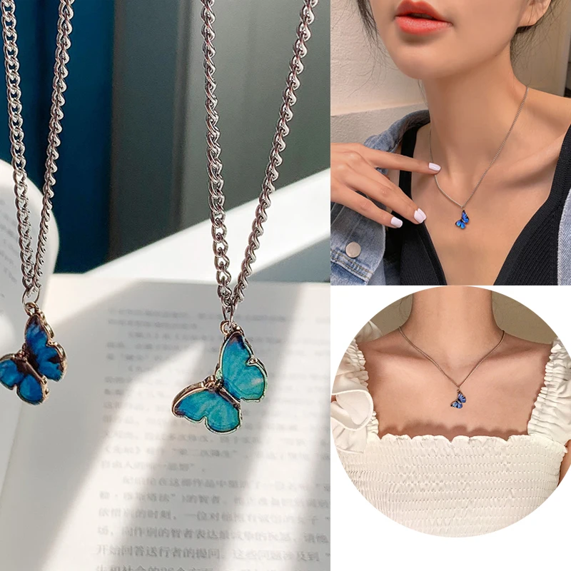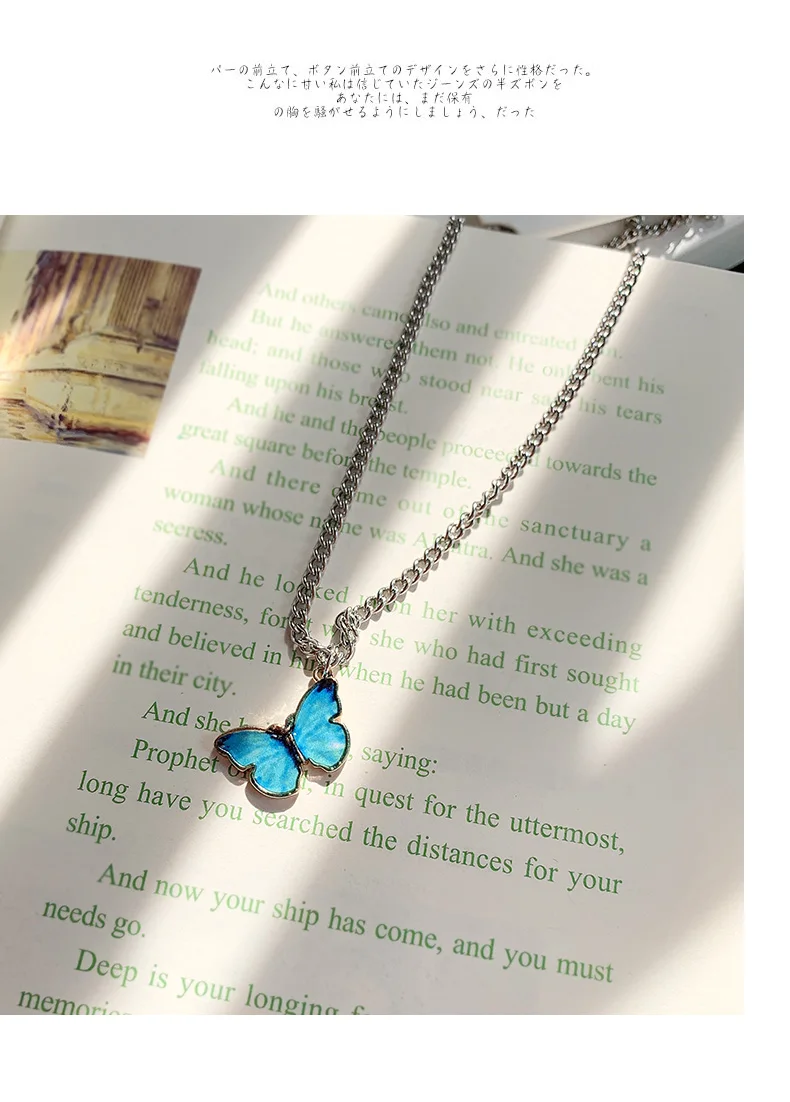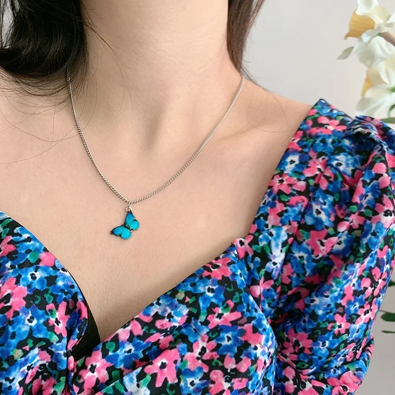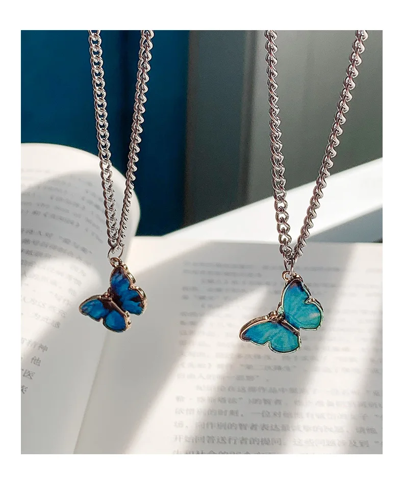 2020 Новая мода синий фиолетовый цвет бабочка кулон ожерелья для женщин модные бусы Чиан ключица цепочка модные украшения