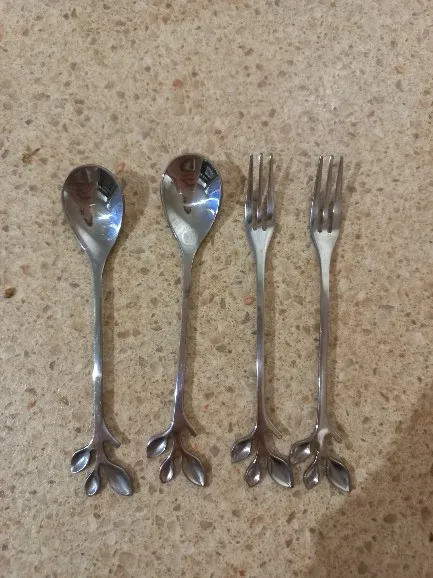 Вес: ложка-лист 9,1 г; Вилка-лист 5,5 г