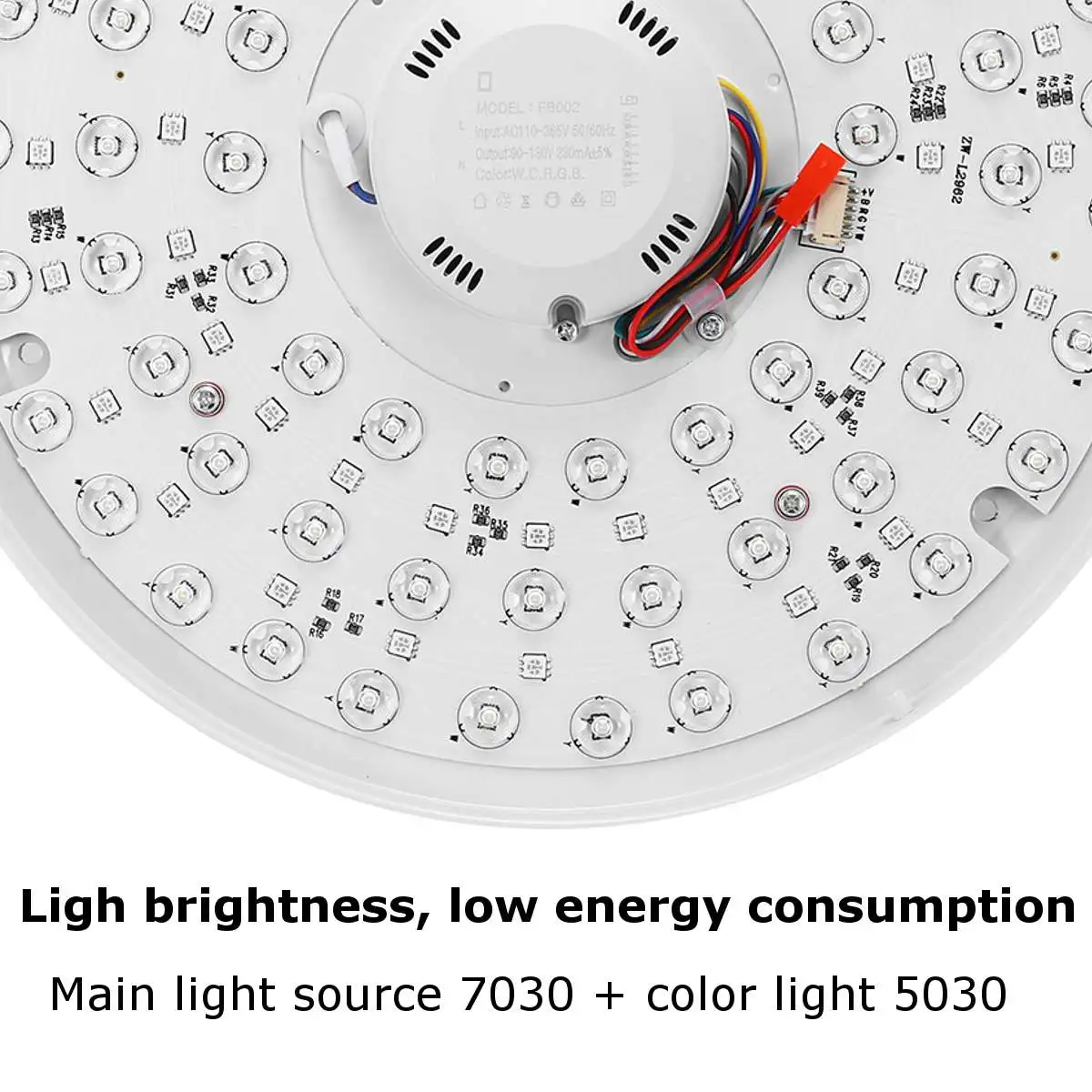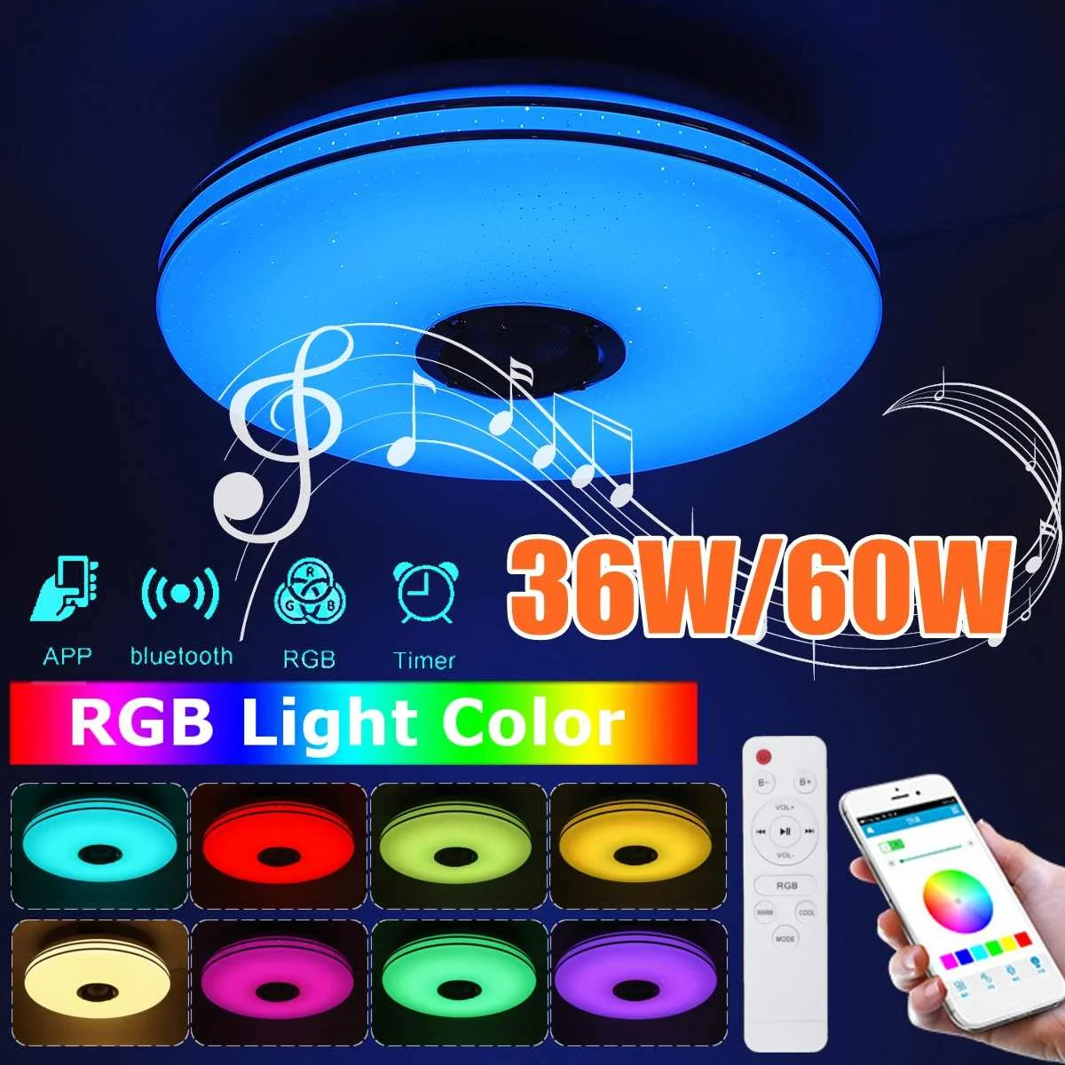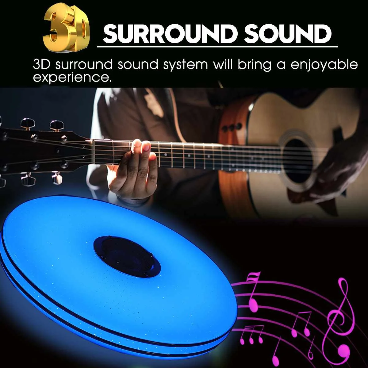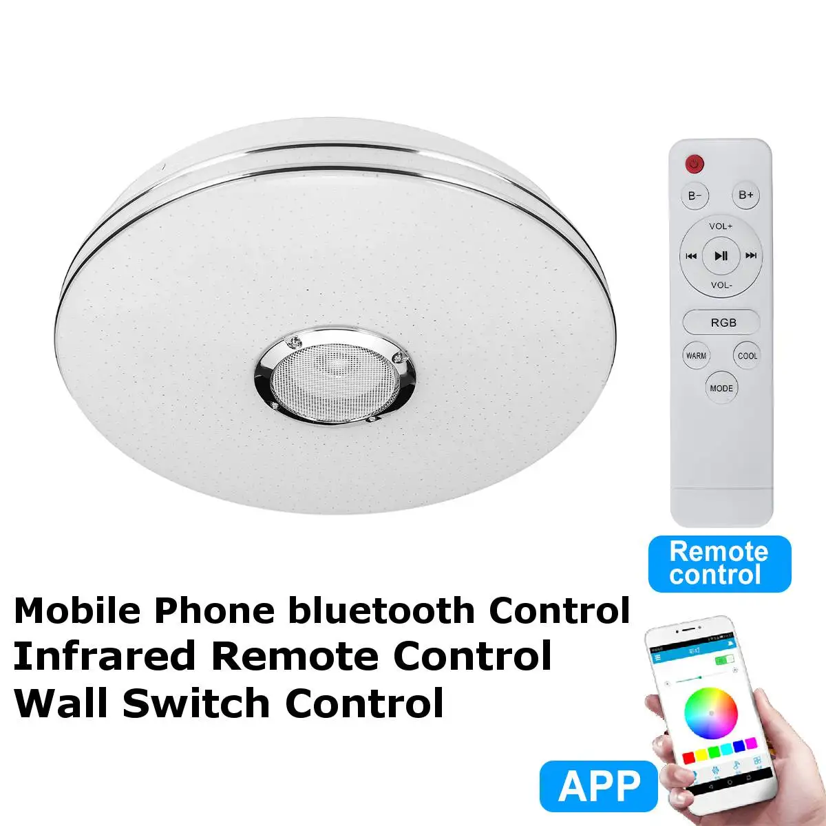 -Мобильное приложение и bluetooth могут регулировать яркость, менять цвет, пульт дистанционного управления может включать и выключать светильник, регулировать яркость и цвет, воспроизводить песни, регулировать громкость, это такой умный потолочный светильник, который изменит вашу концепцию на потолочный светильник, Это как верный компаньон, который позаботится о вашем настроении.