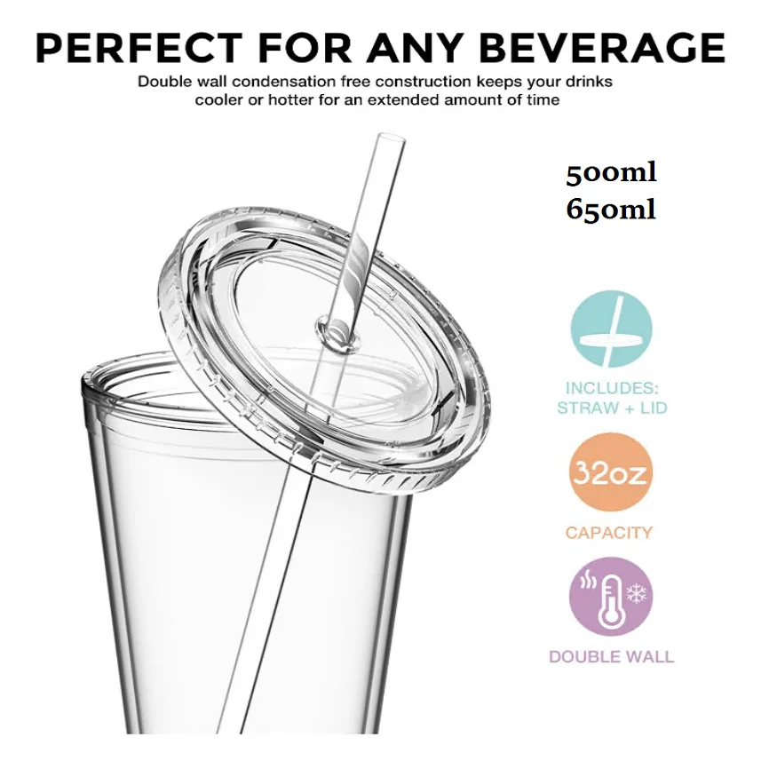 Двухслойная пластиковая антиожоговая ручная соломенная чашка премиум-класса из акрила с двойными стенками подходит для посудомоечной машины Универсальная