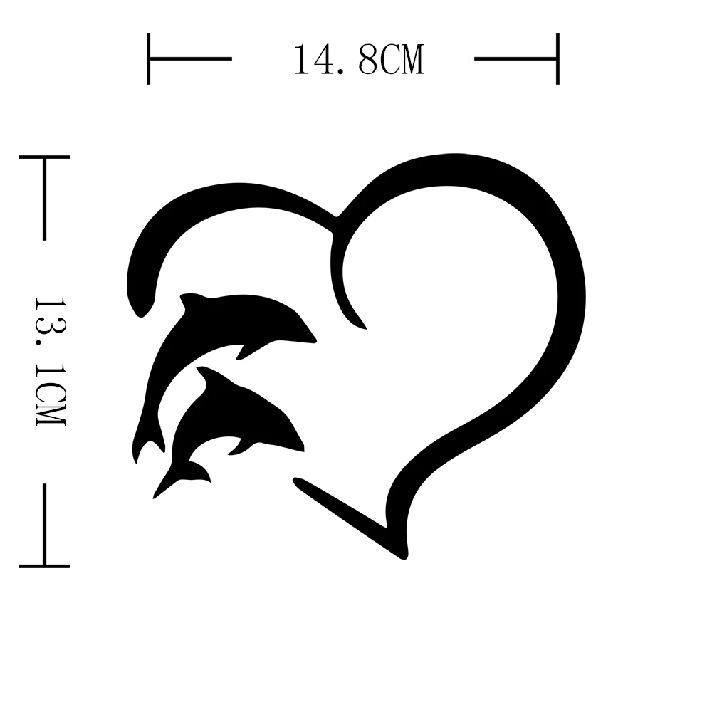 Автомобильная наклейка с дельфином влюбленными в сердце, s и наклейки, забавная наклейка на бампер для стайлинга автомобиля, Виниловая наклейка для автомобилей, окна, двери, кузова 5,8 дюйма x 5,1 дюйма