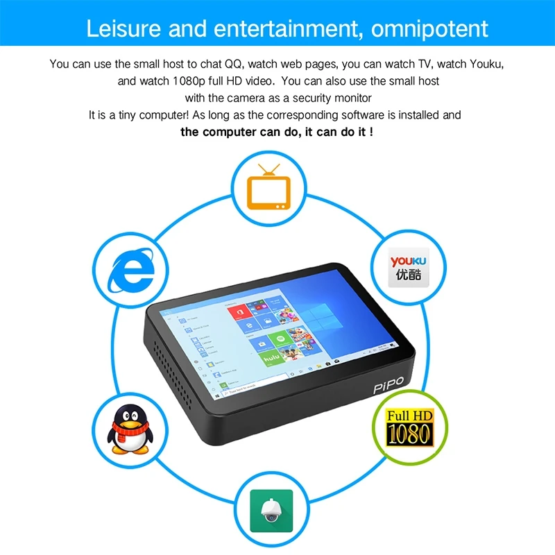 Мини-ПК PiPo X2s, 8 дюймов, 2 Гб ОЗУ 32 Гб ПЗУ, Windows 10, Intel Atom Z3735F, поддержка Wi-Fi, BT, TF-карт, RJ45