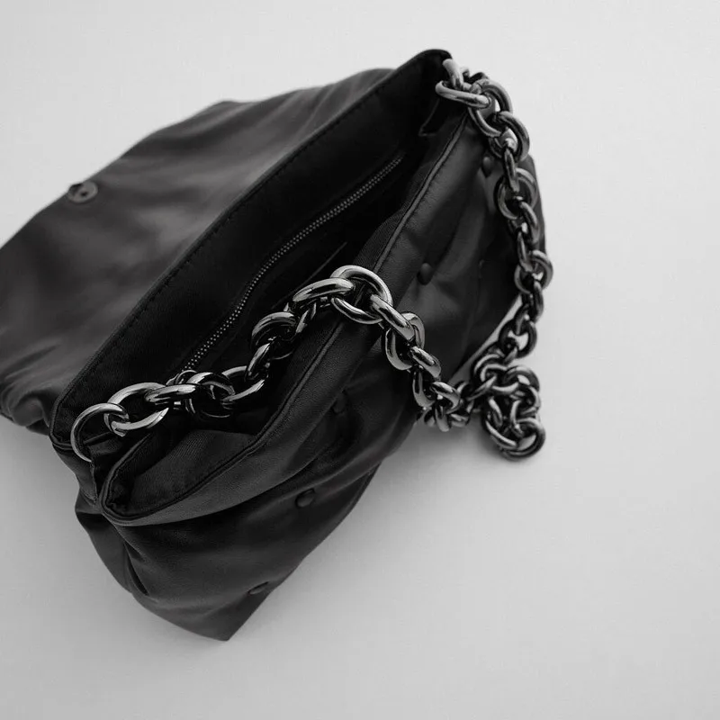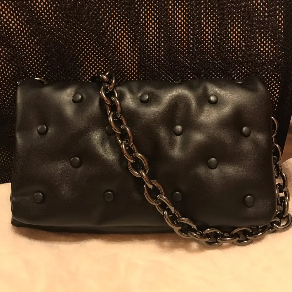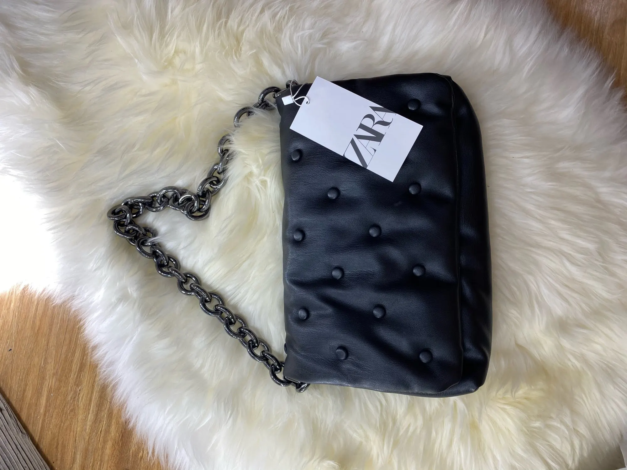 Сумка классная, смотрится дорого! Цепь массивная, тяжелая. Все сделано очень качественно. Внутри бирка Зара.