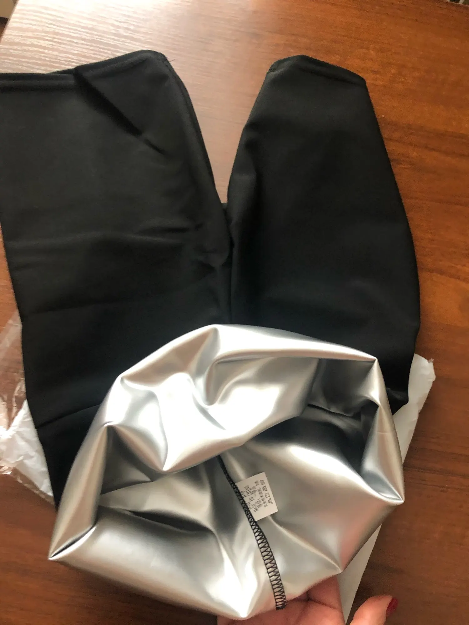 Товар пришёл быстро, когда развернула, была растроена что маленькие и я не влезу вообще, после решила всё таки натянуть, они оказывается очень тянучие)... Просто ходить в них даже холодно, в них только спортом заниматься или ходить в жару!