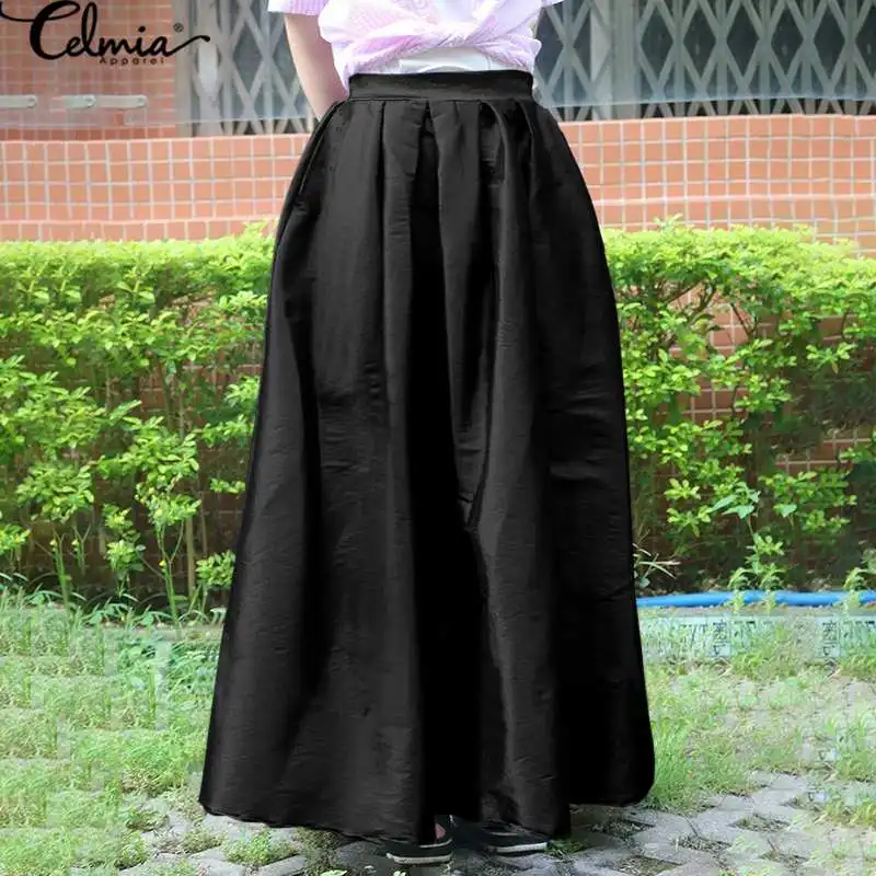 Размера плюс 5XL Celmia для женщин сексуальная сатиновая Ночная сорочка макси юбки 2021 Осенняя мода, с высокой талией, повседневные свободные плиссированные элегантная длинная юбка Buttoms